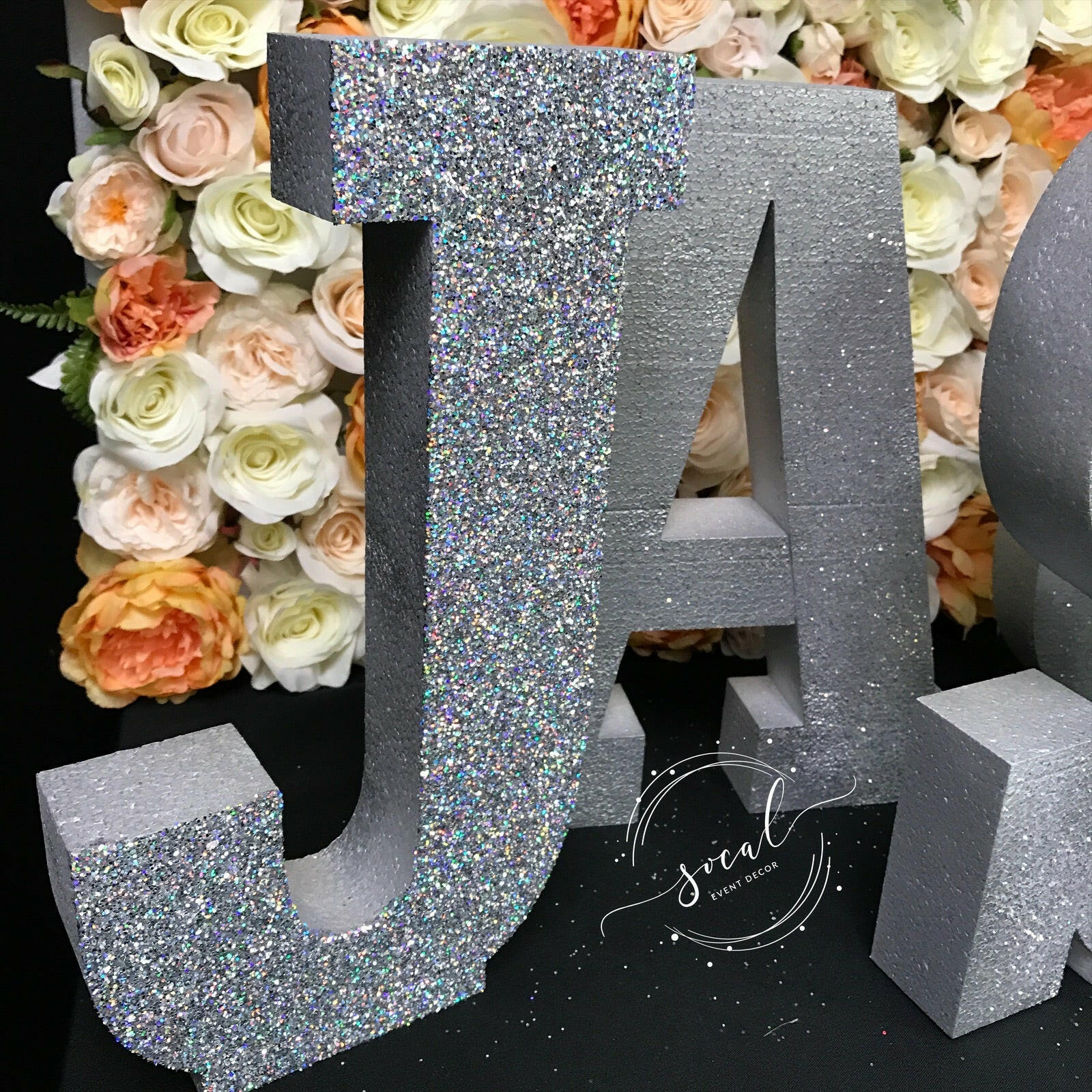 Glitter Large Freestanding Foam Letters Priced EACH for Prop or Candy Dessert Table Wedding, Graduation, Birthday