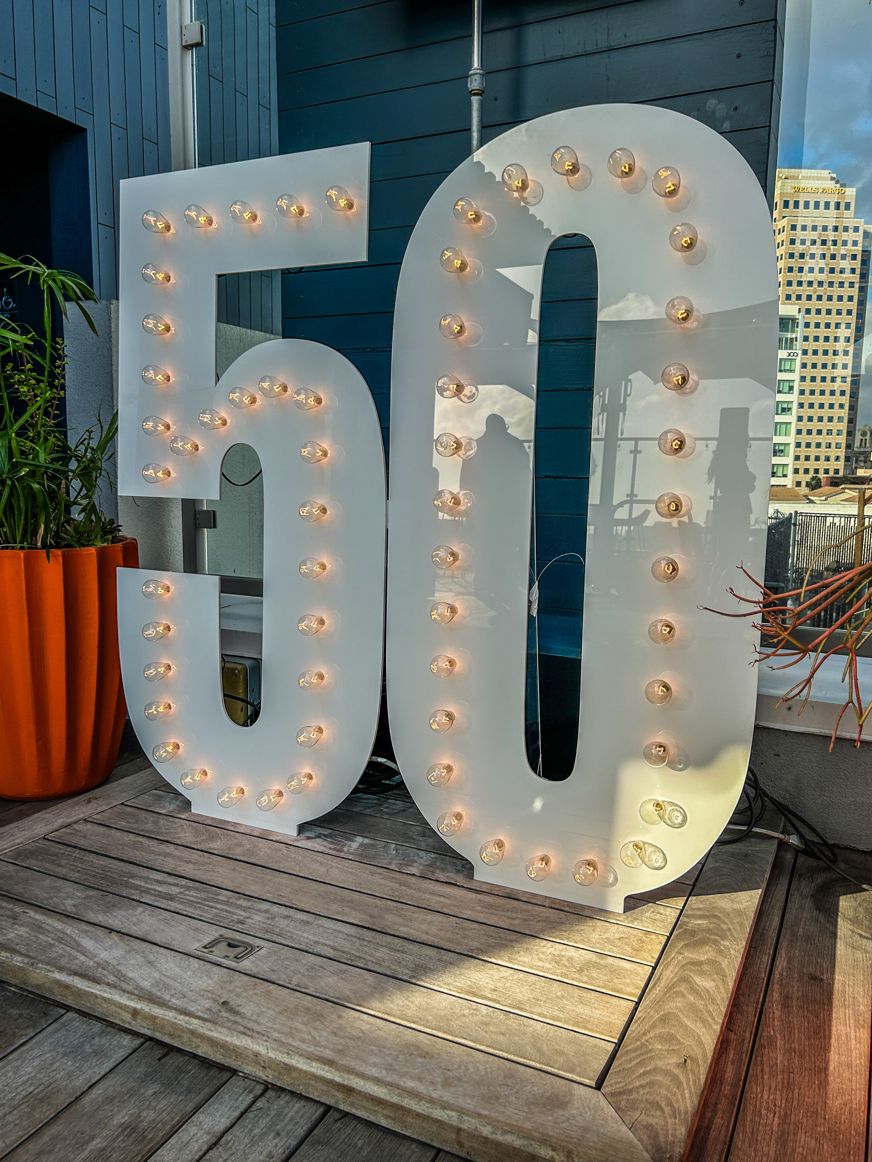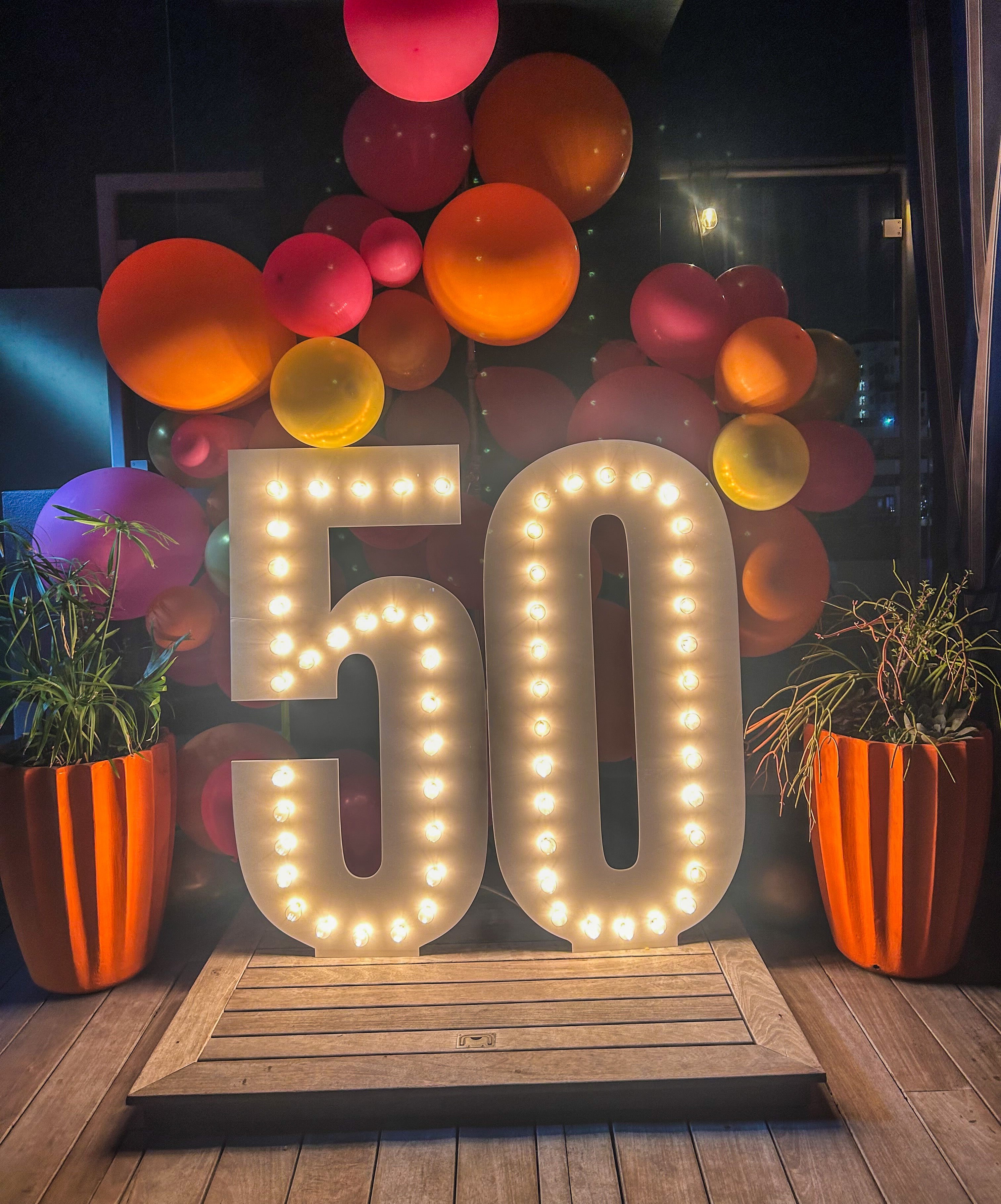 Large party event sign with balloon swag! Local Orange County CA Delivery