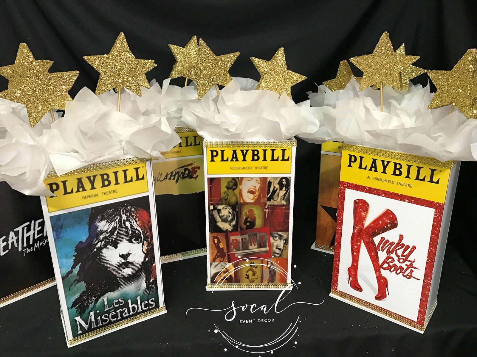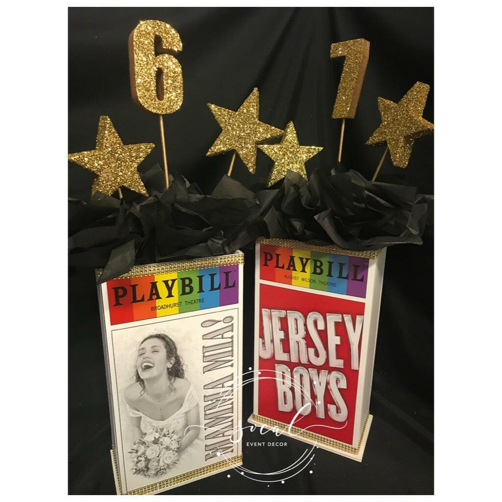 Theatre, Playbill and Entertainment Themed Centerpieces for Sweet 16, 21st, 30th, 40th, 50th Birthday Party