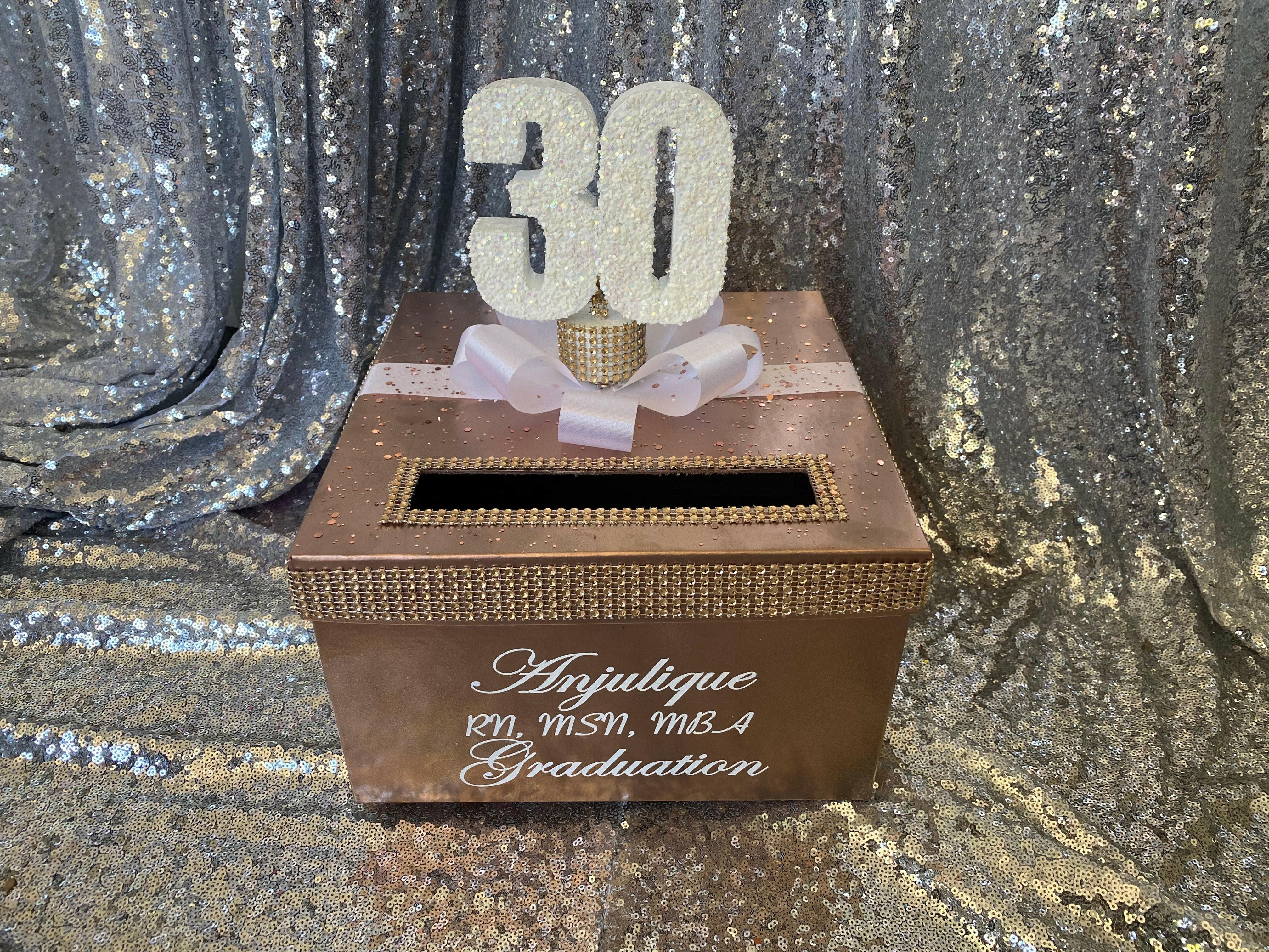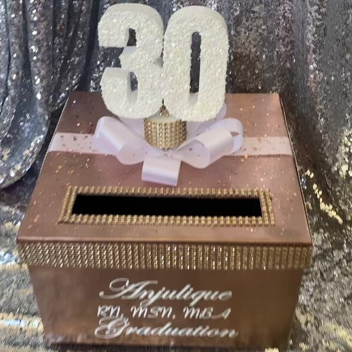 USA Made! Please support Local! 10" Custom Card Box! Rhinestone borders throughout. Vinyl name saying on the front.