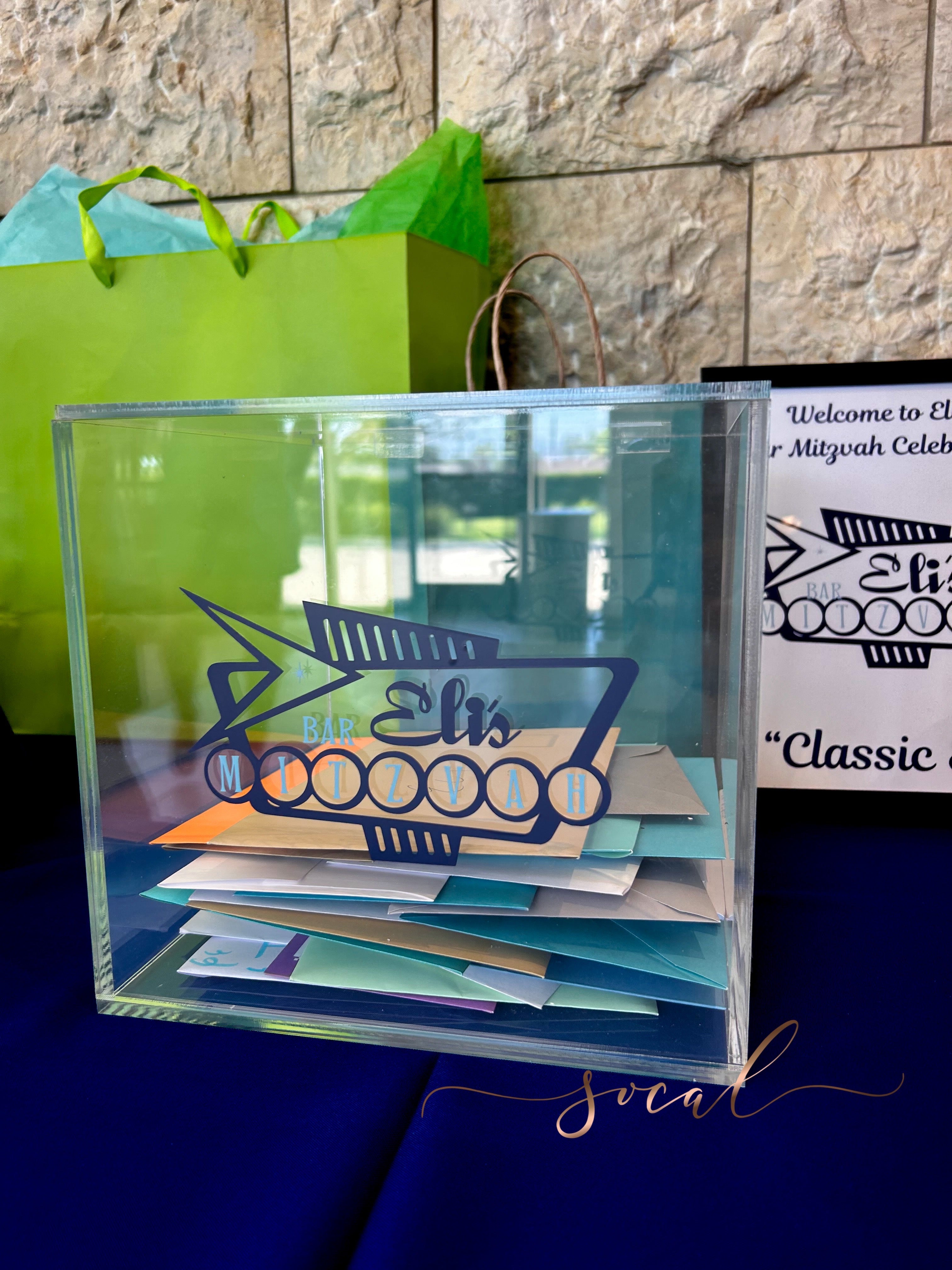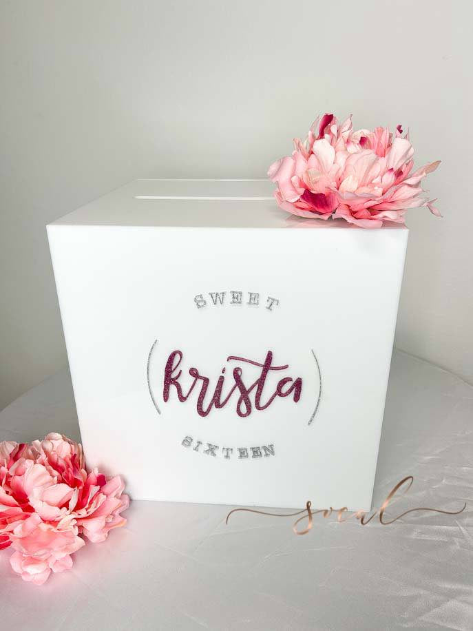 Beautiful Acrylic Card Box perfect for your Wedding or child's Sweet 16, Mitzvah, Quince.