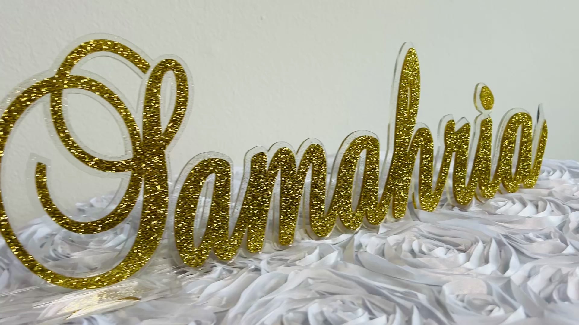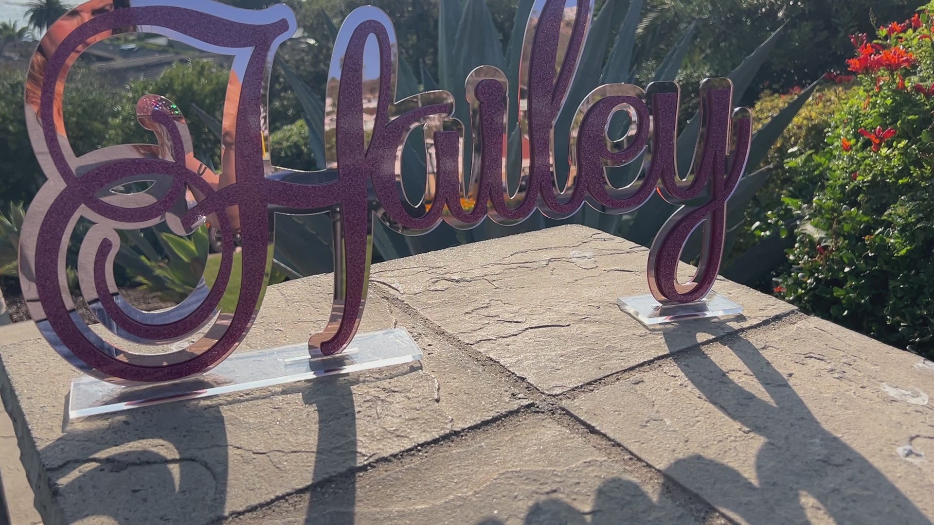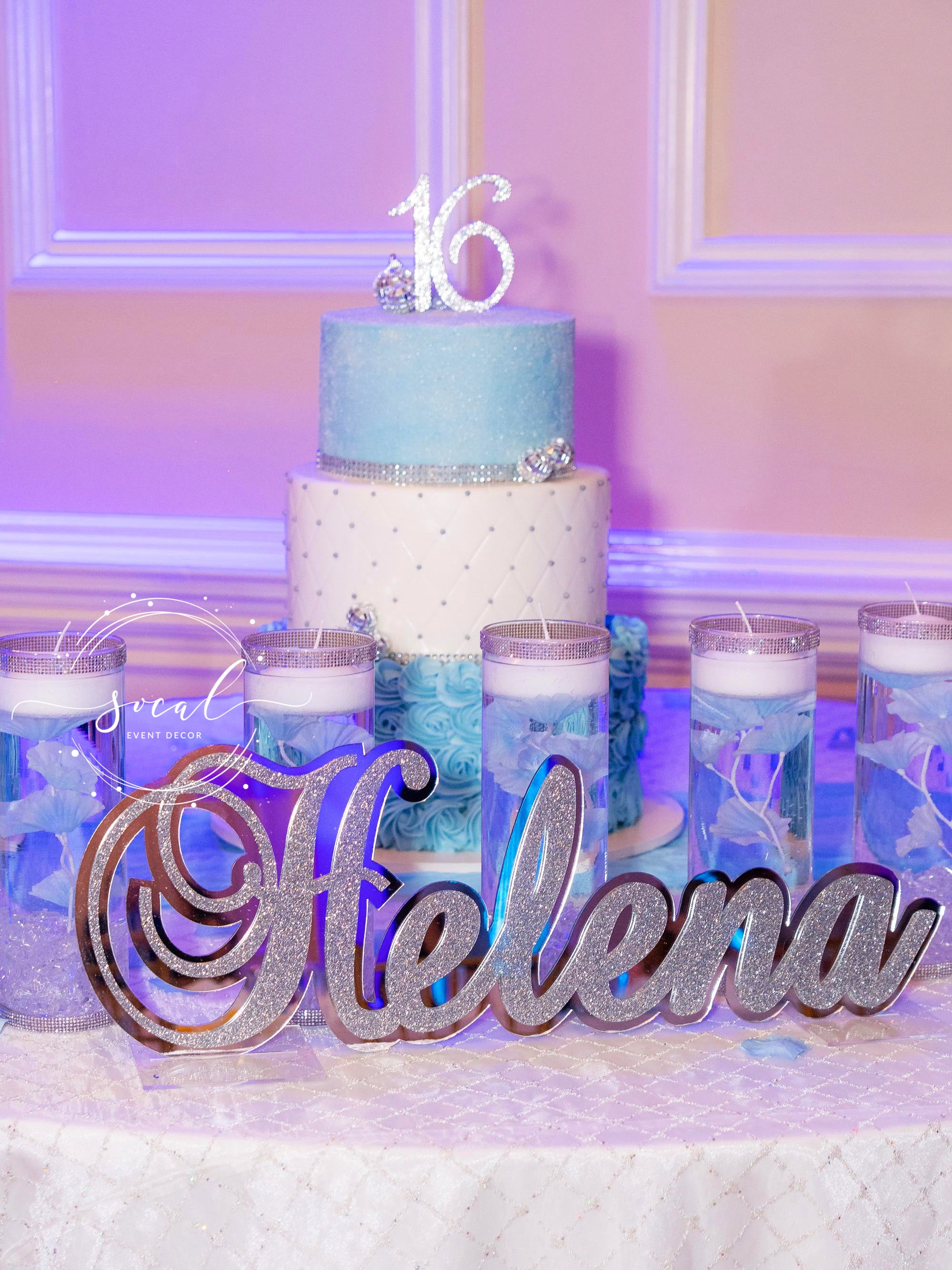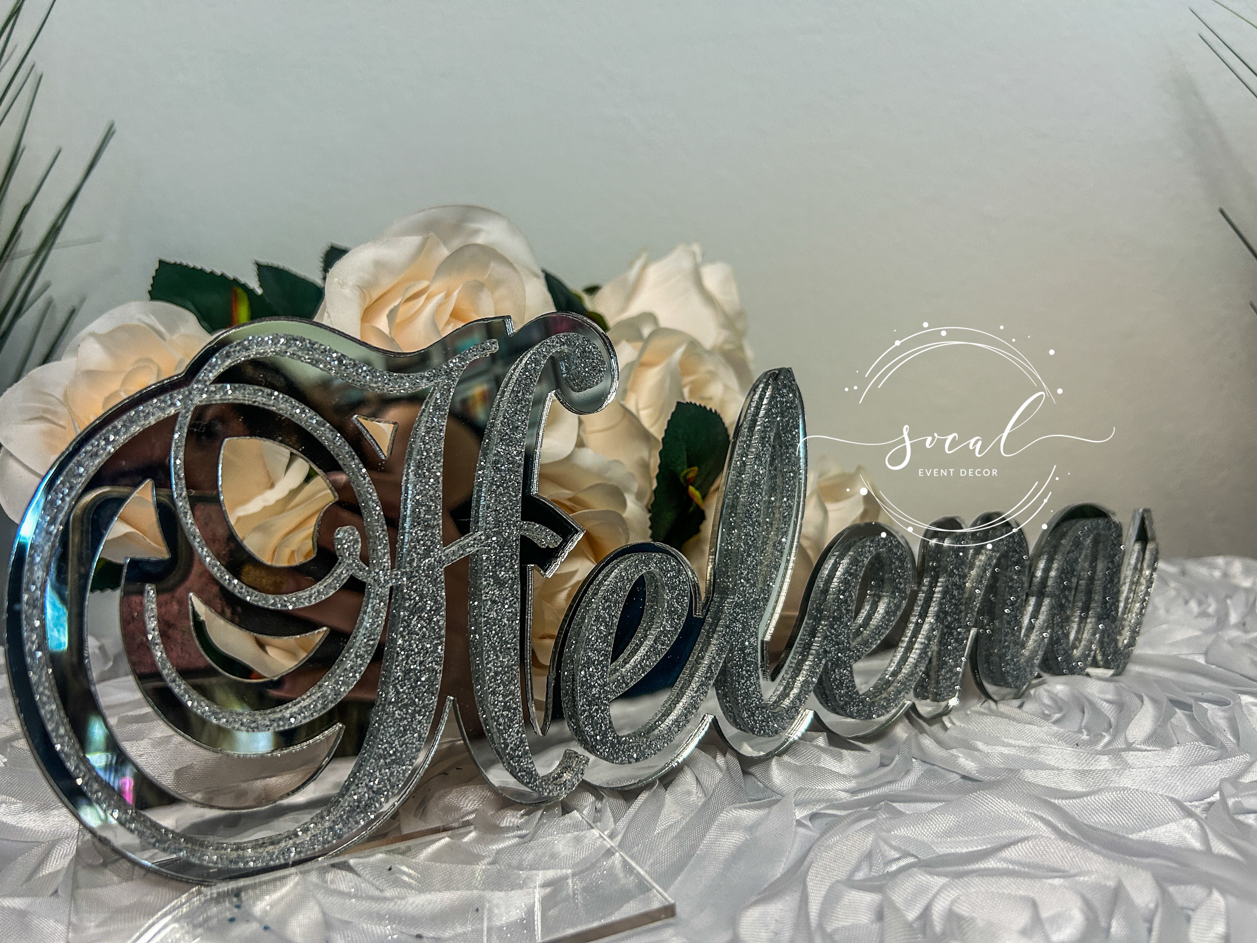So many colors to choose from including beautiful mirror finish, sparkly glitter and vibrant standard colors. Also included are clear stands that you will insert the name into so it can freestand. This can also easily be hung on a wall after the party! The name is available in three sizes 12" Long (Hailey gold, Alexis & Guiliana, 17" long (Arianna) and 23" long (Hailey pink) and 35" long.