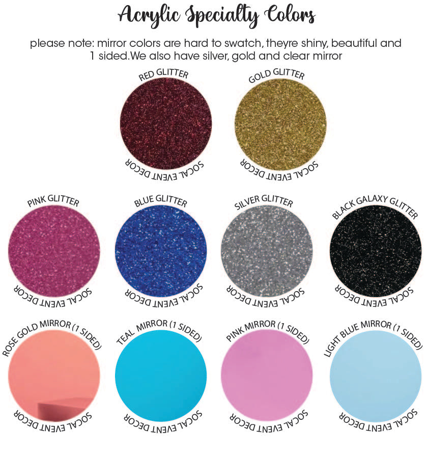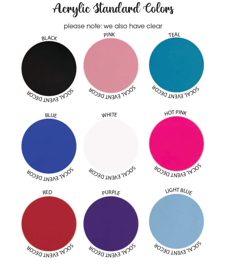 If you need more information about this product or the colors of acrylic please message us or feel free to call the shop at 657-235-8178. We are a handmade shop located in Southern California and we have been making event decor for over 20 years! In fact, we were one of the first makers of candle lighting centerpieces back when our shop was located on Long Island, New York! It's our specialty! Shop local and support your local business owners. It's much appreciated :)