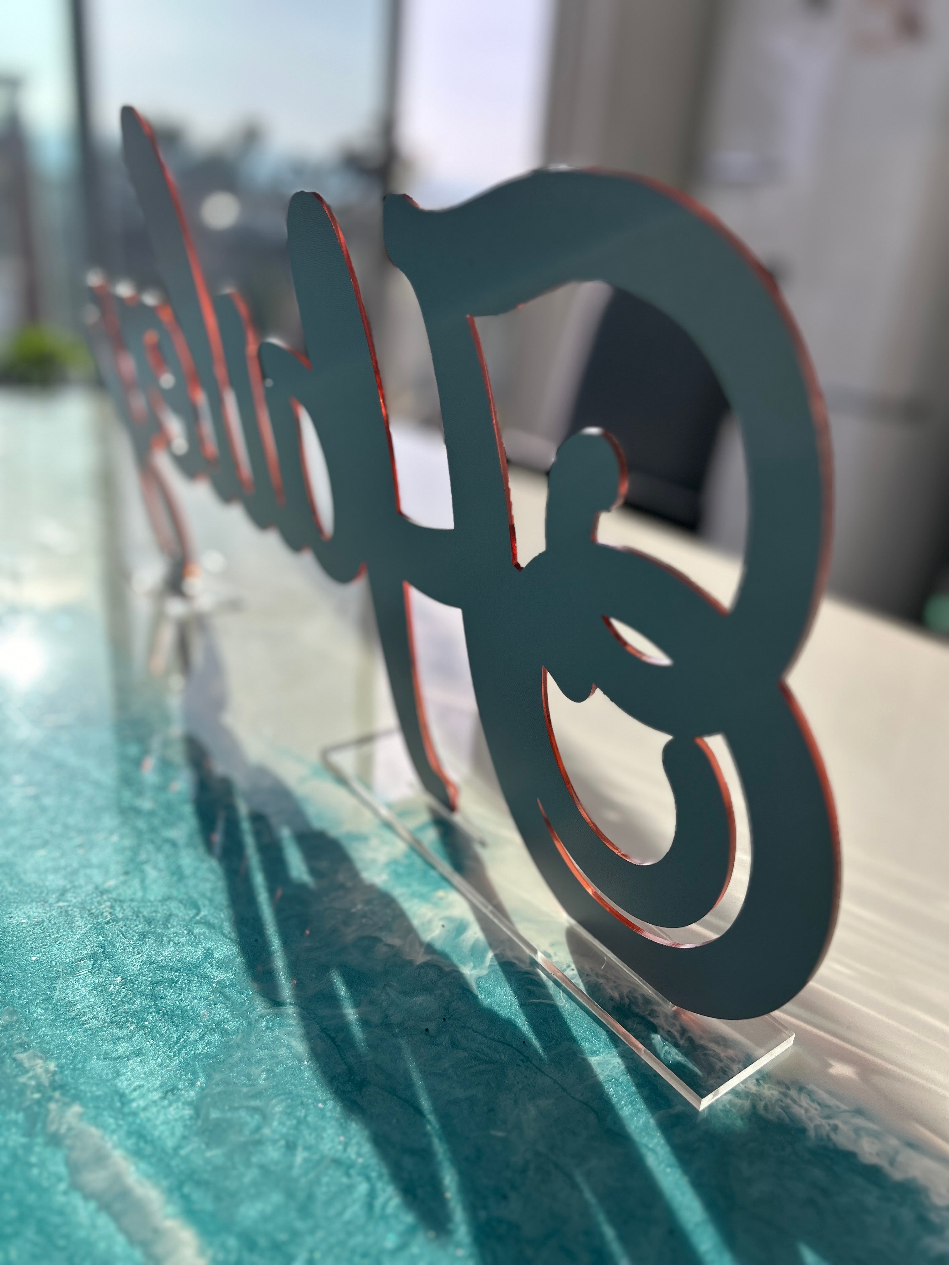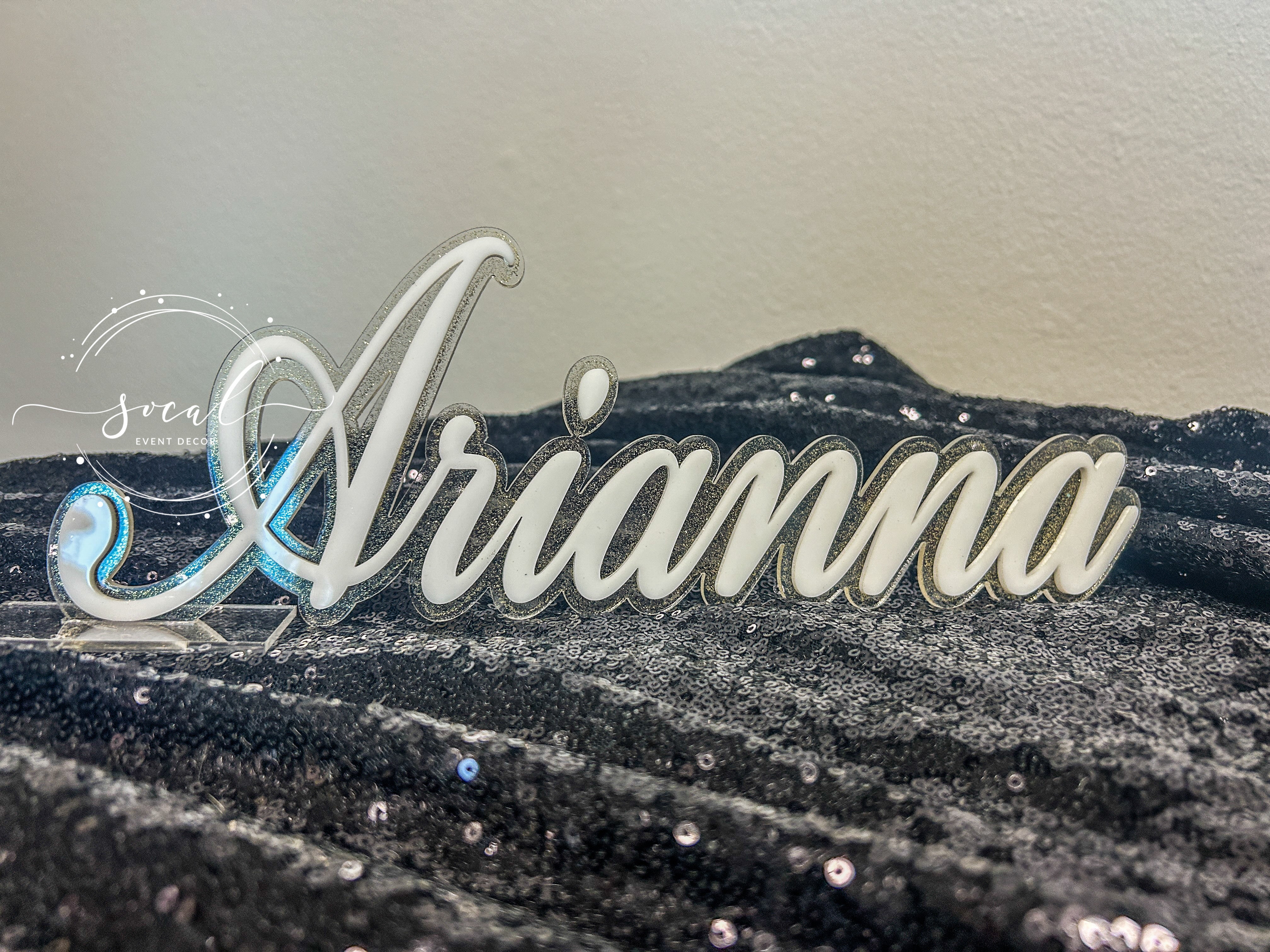 Made in California! Custom name in acrylic available in 3 sizes and one layer or two.