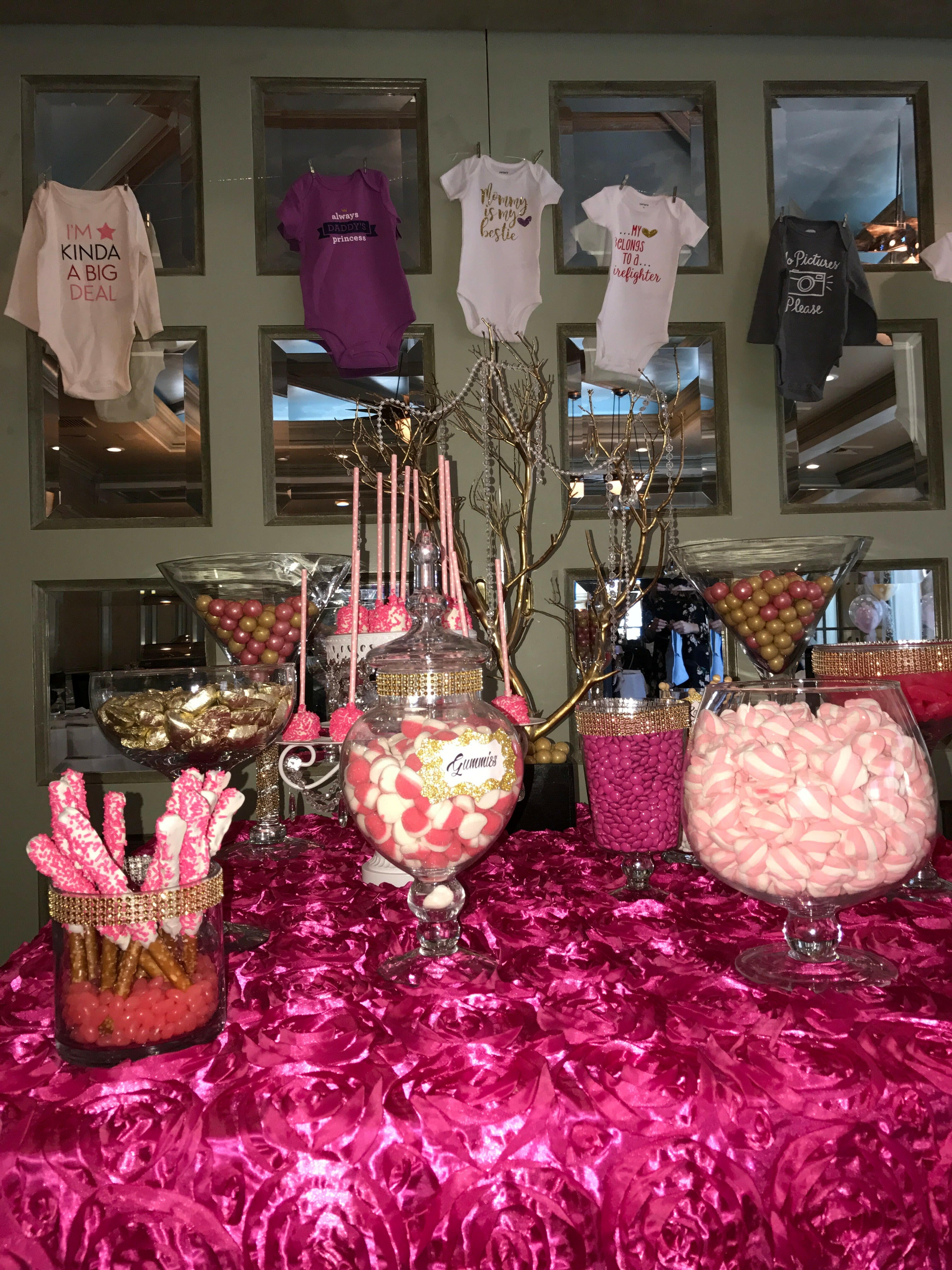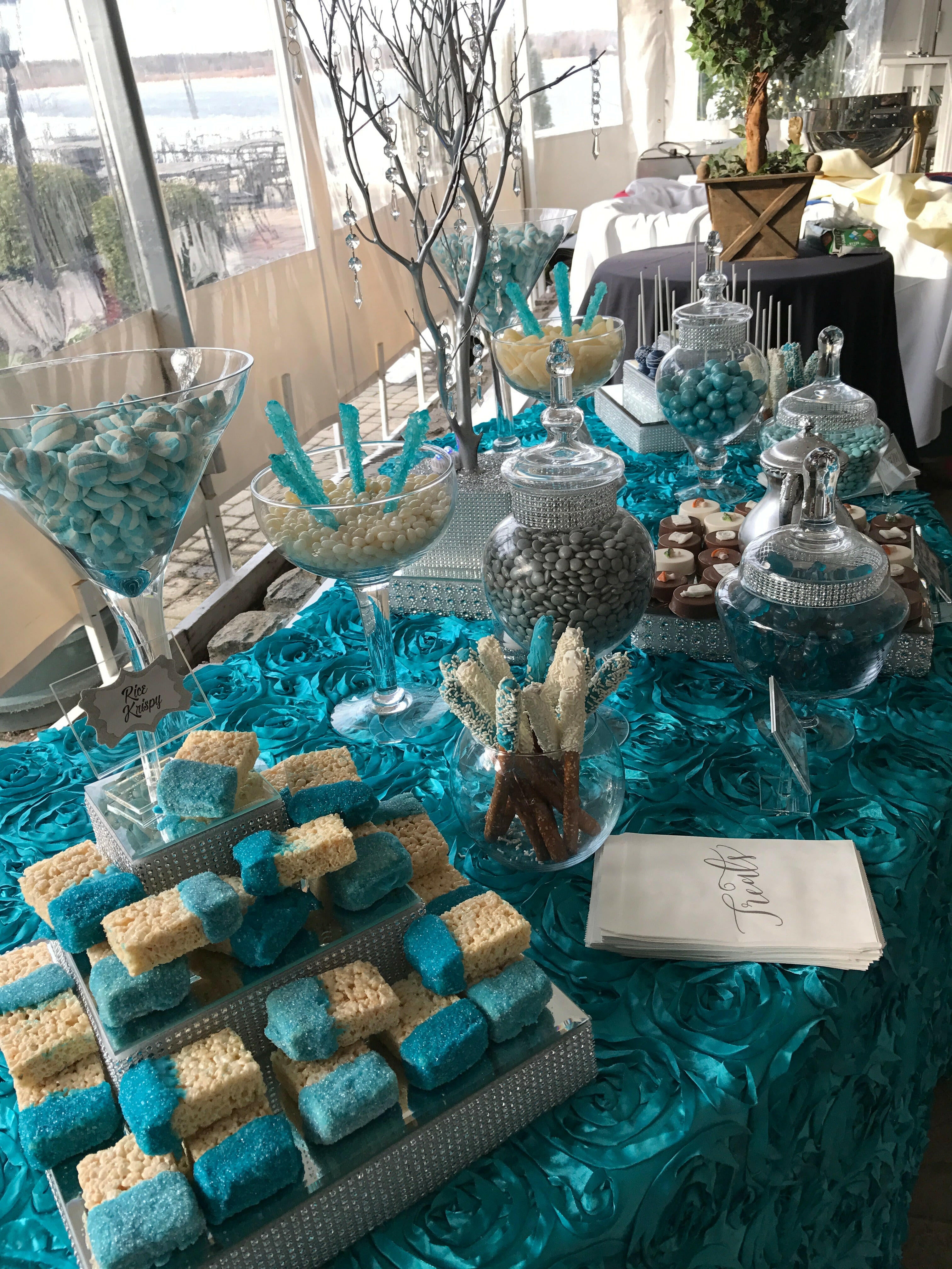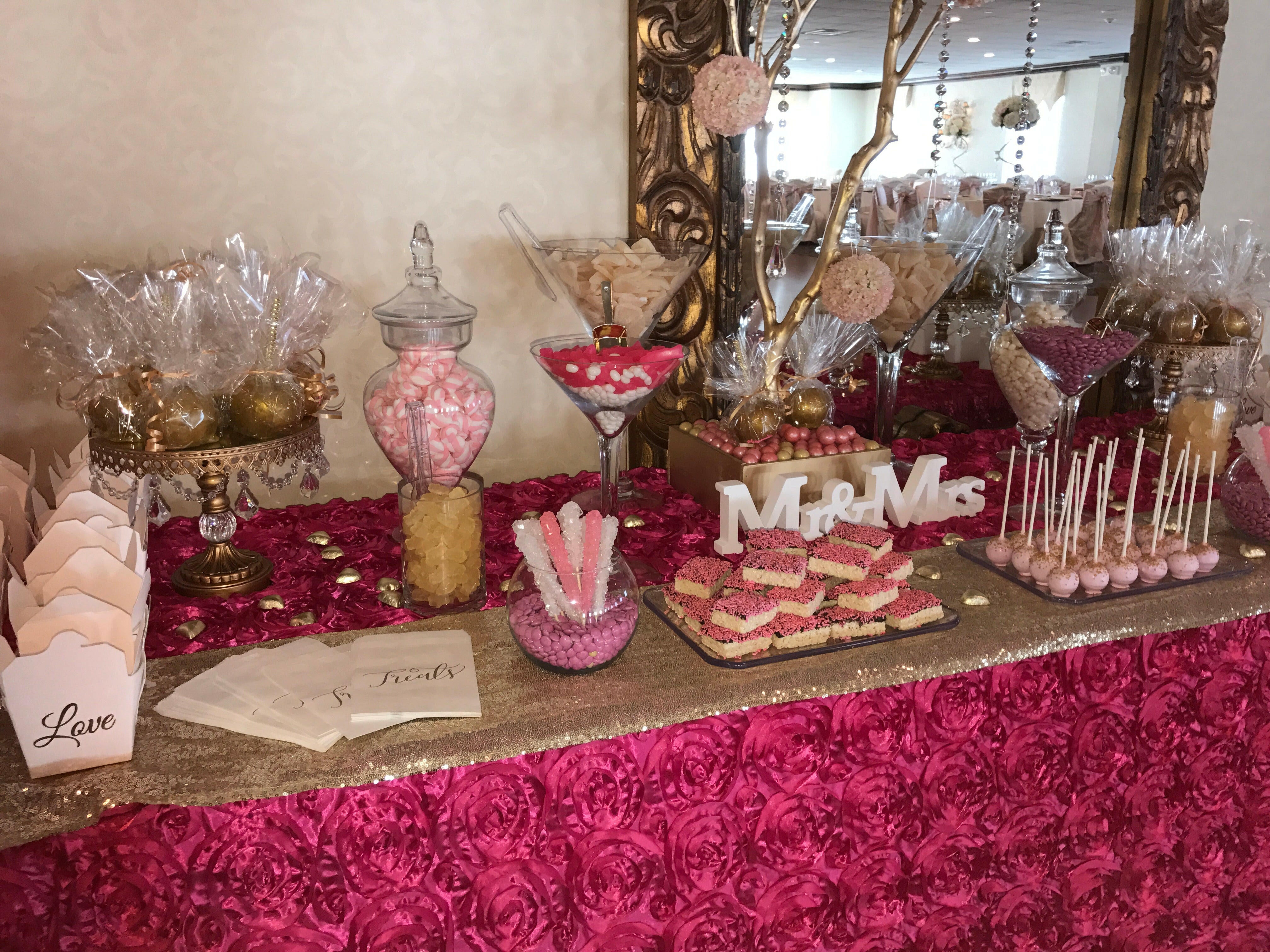 Beautiful candy tables themed and color coordinated. Many options at different price points. This table is approx 4 -6 feet long and serves about 80-150 guests with premium candy and chocolate in your event colors.
