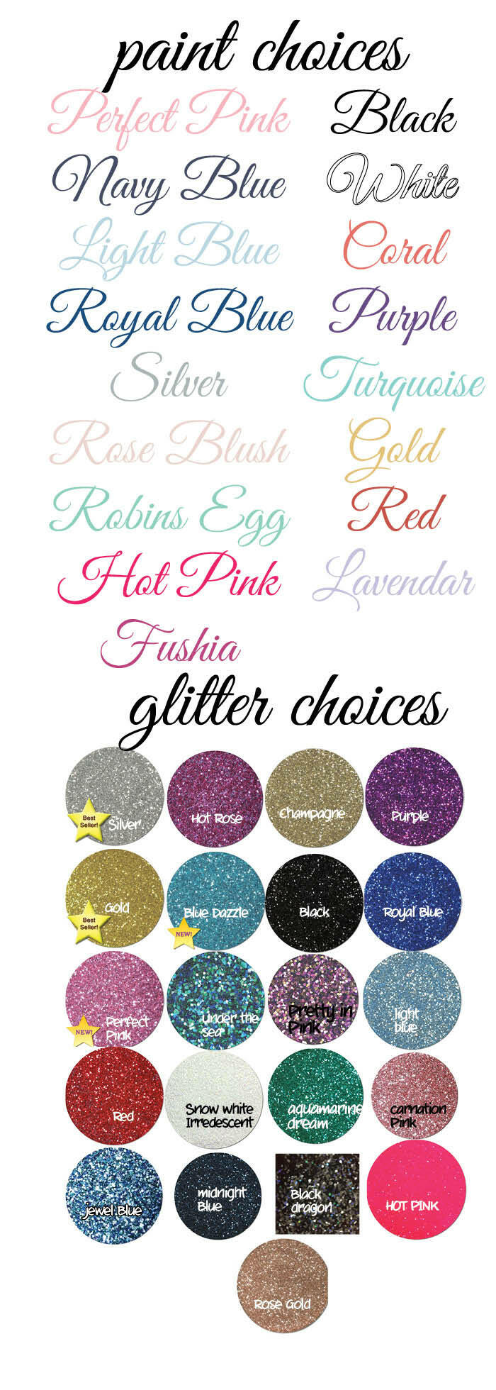 LARGER VIEW OF PAINT AND GLITTER COLORS: http://www.thepartyplaceli.com/uncategorized/glitter-paint-choices/
