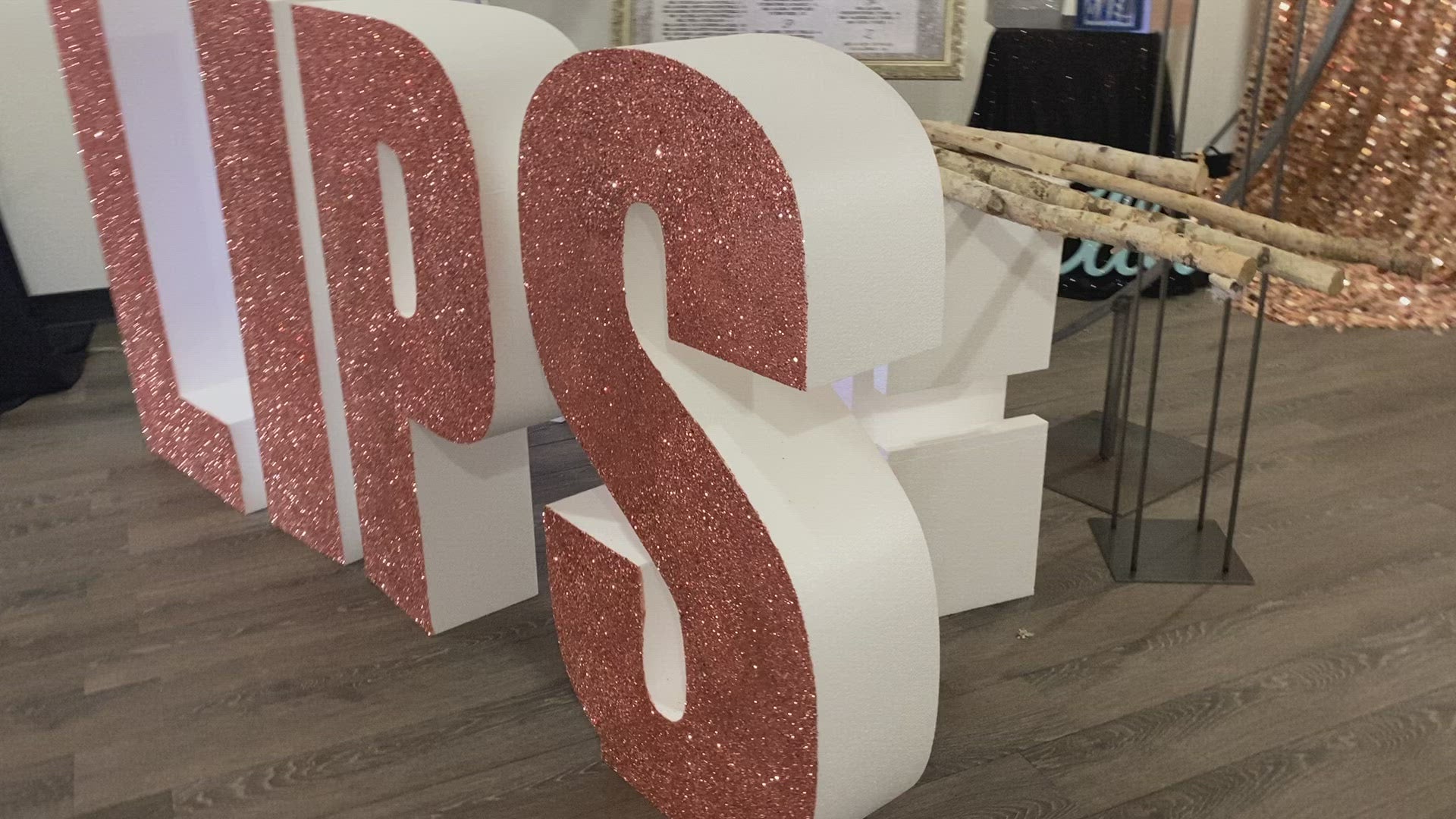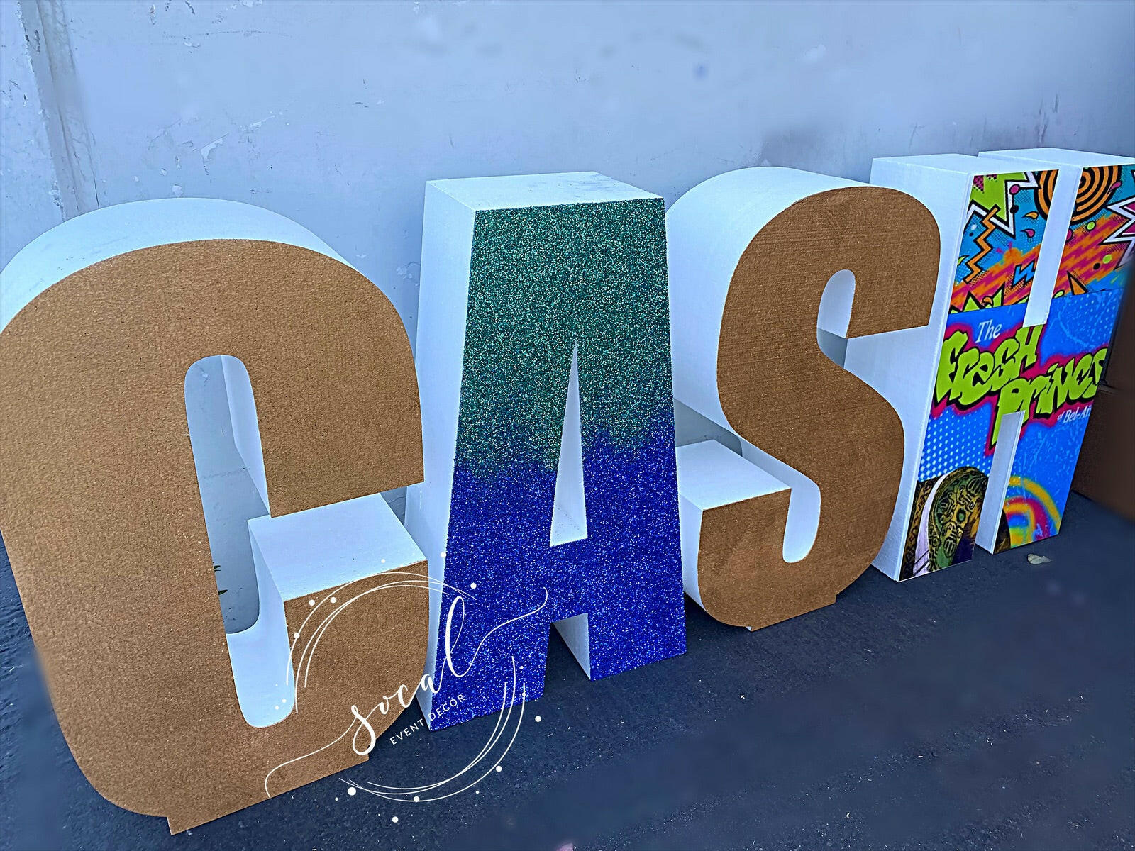 Freestanding large foam letters in unfinished white. Thickness is 8", height is approx 30". Other thicknesses available, please ask.