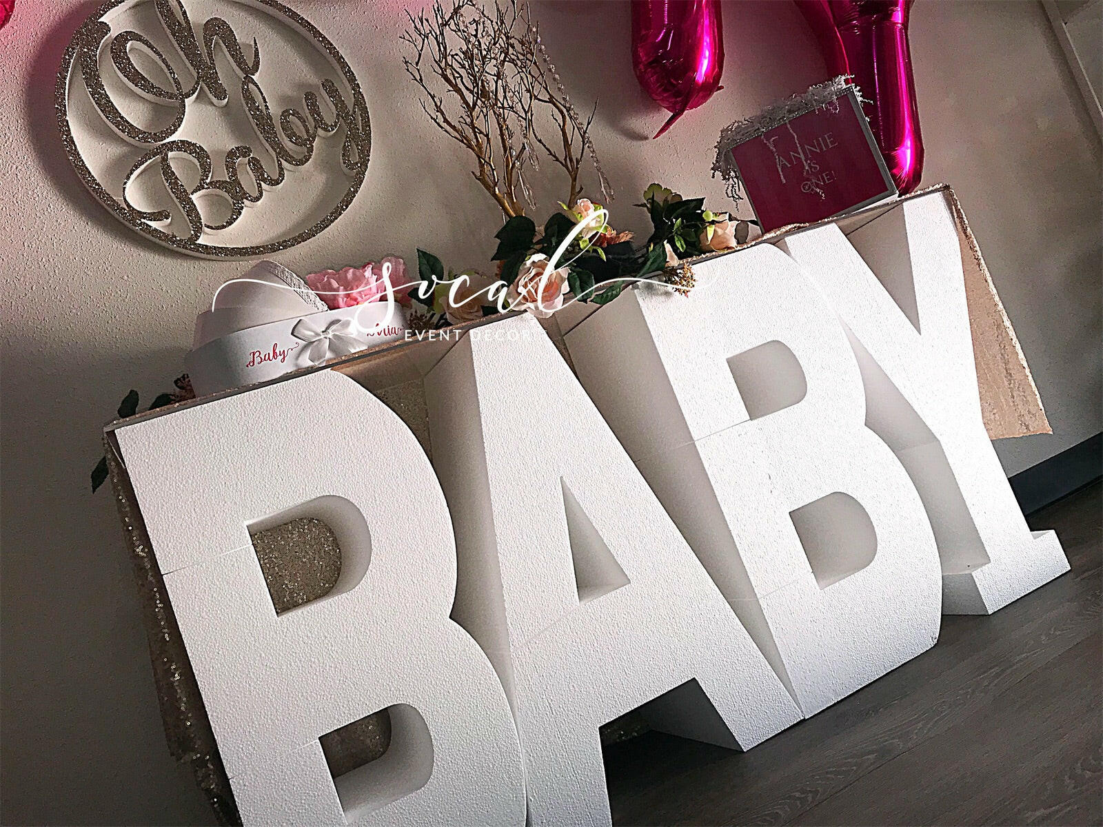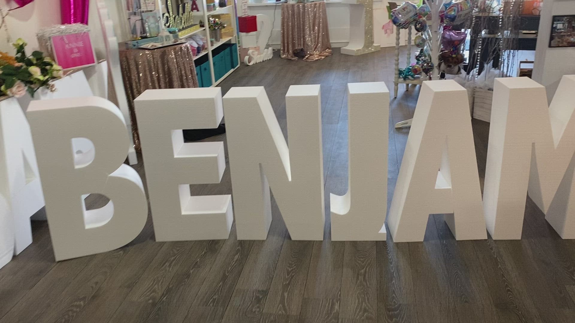 Freestanding large foam letters in unfinished white. Thickness is 8", height is approx 30". Other thicknesses available, please ask.