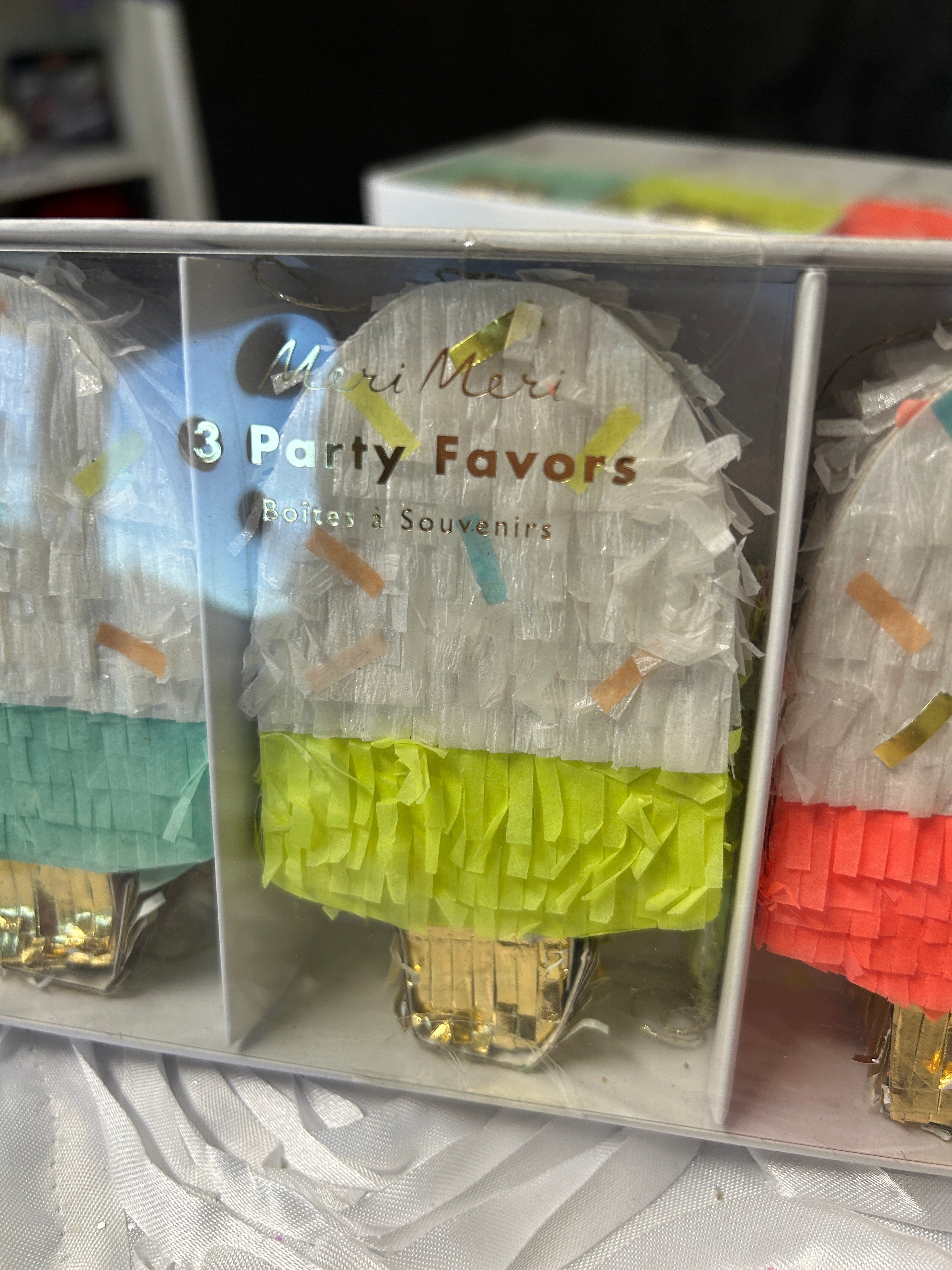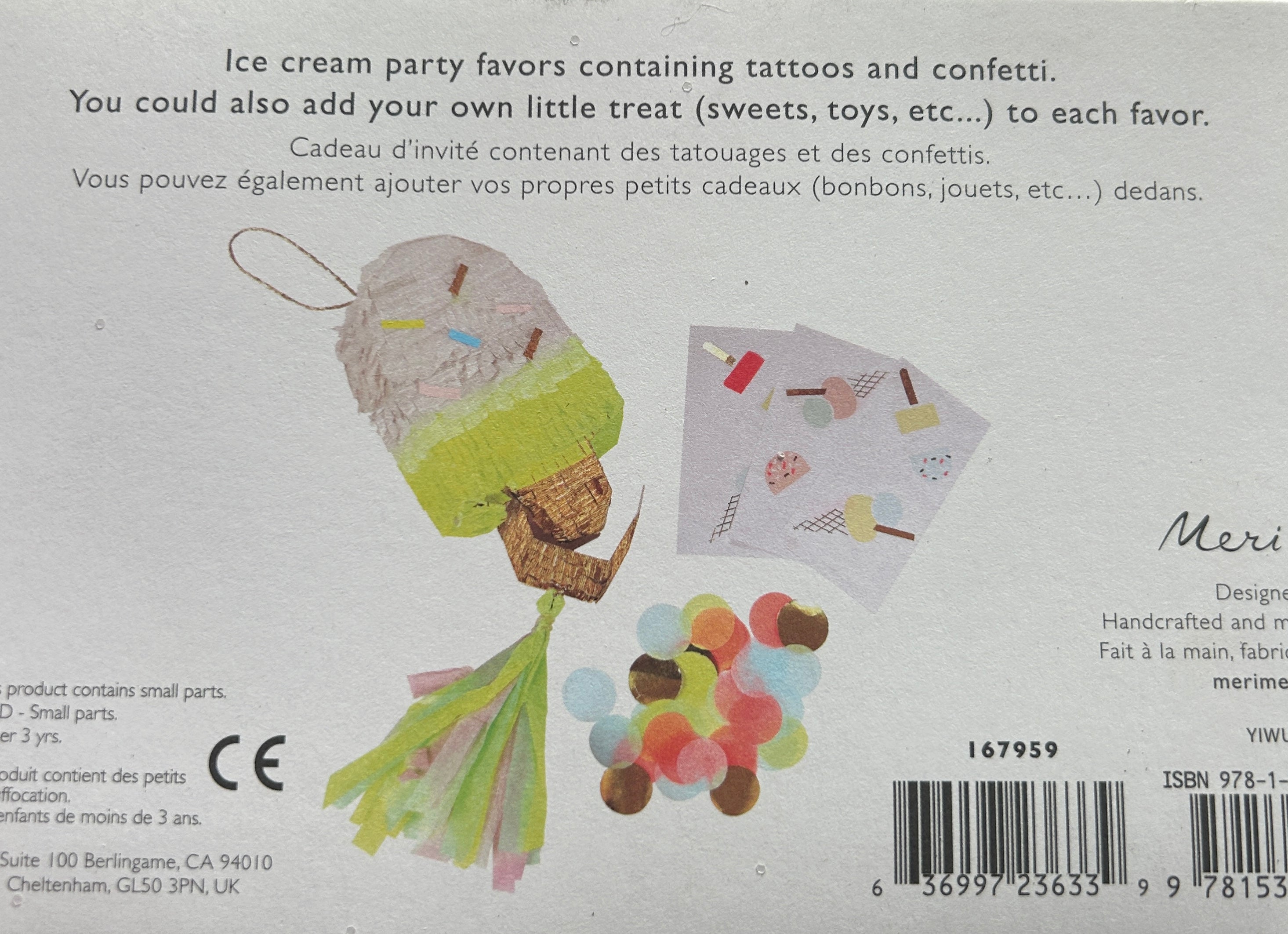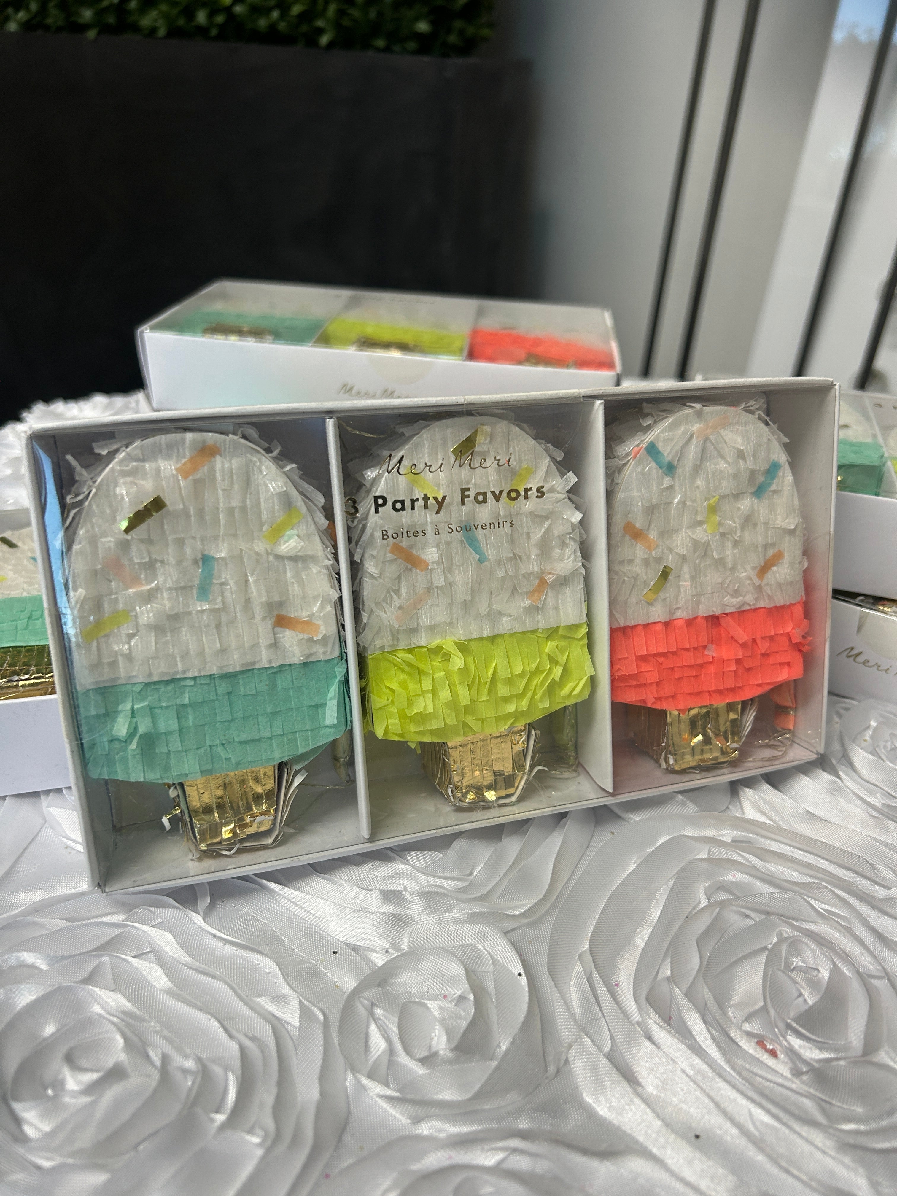 Each favor looks like a mini piñata and comes with confetti and tattoos. You can also add your own treats.