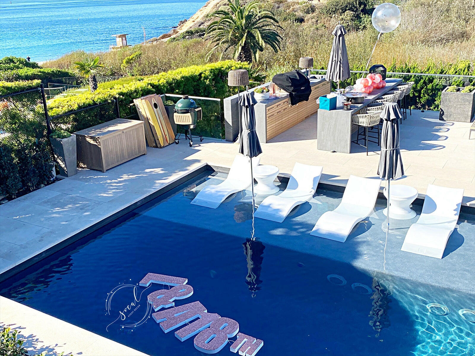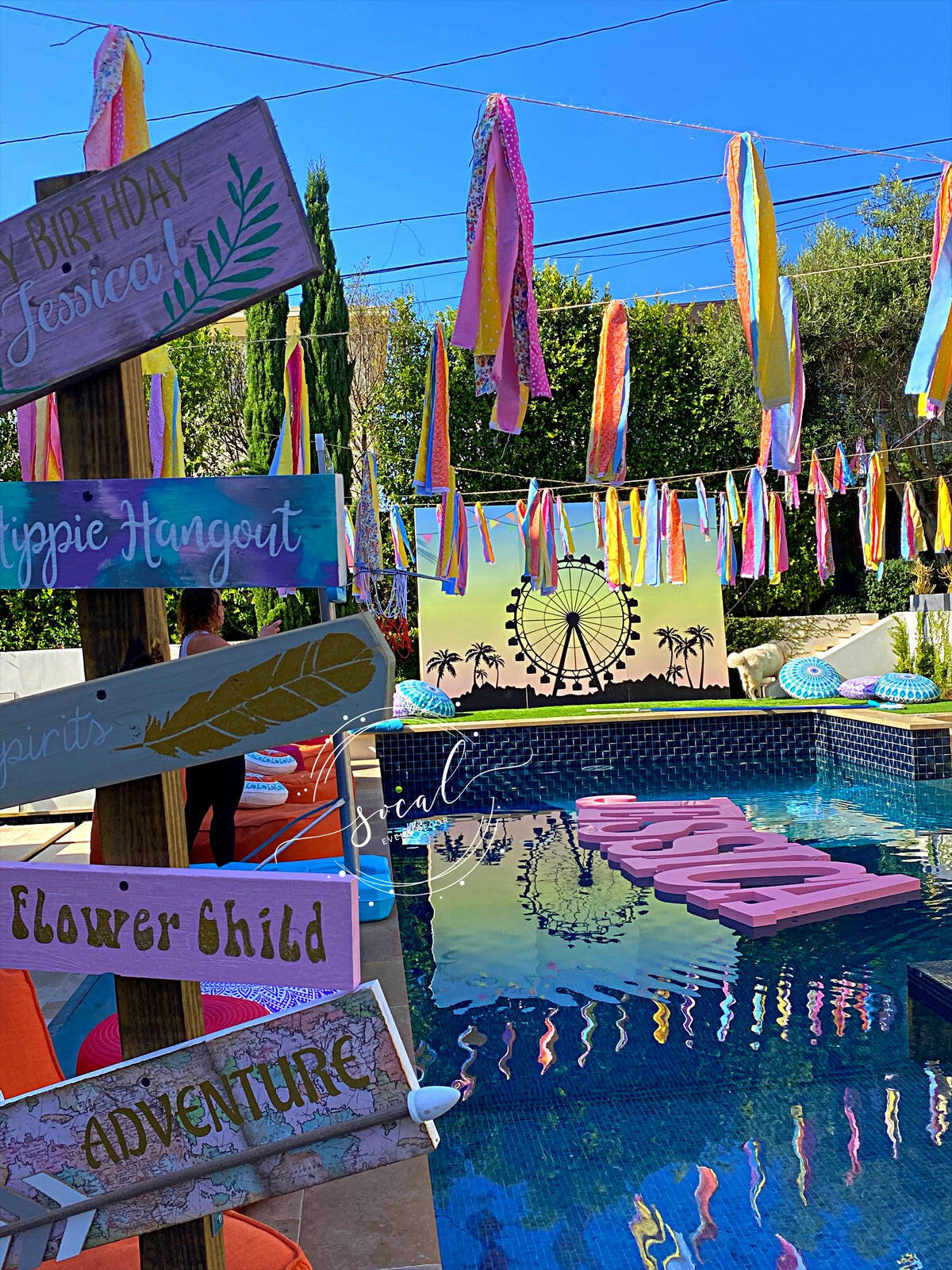 Comes with zip ties and eye hooks attached to the word and numbers for easy pool install!