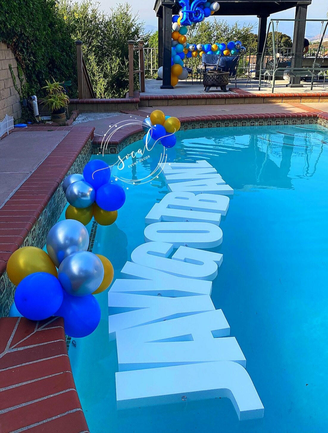 USA Made! Please support Local! Large letters for prop of pool float! Yes it floats in the pool!! Price PER letter. Call for quoting larger qty of letters or other available sizes. Listed sizes are height per letter. Each letter is 2" thick and you pick the height that you'd like along with the finish!