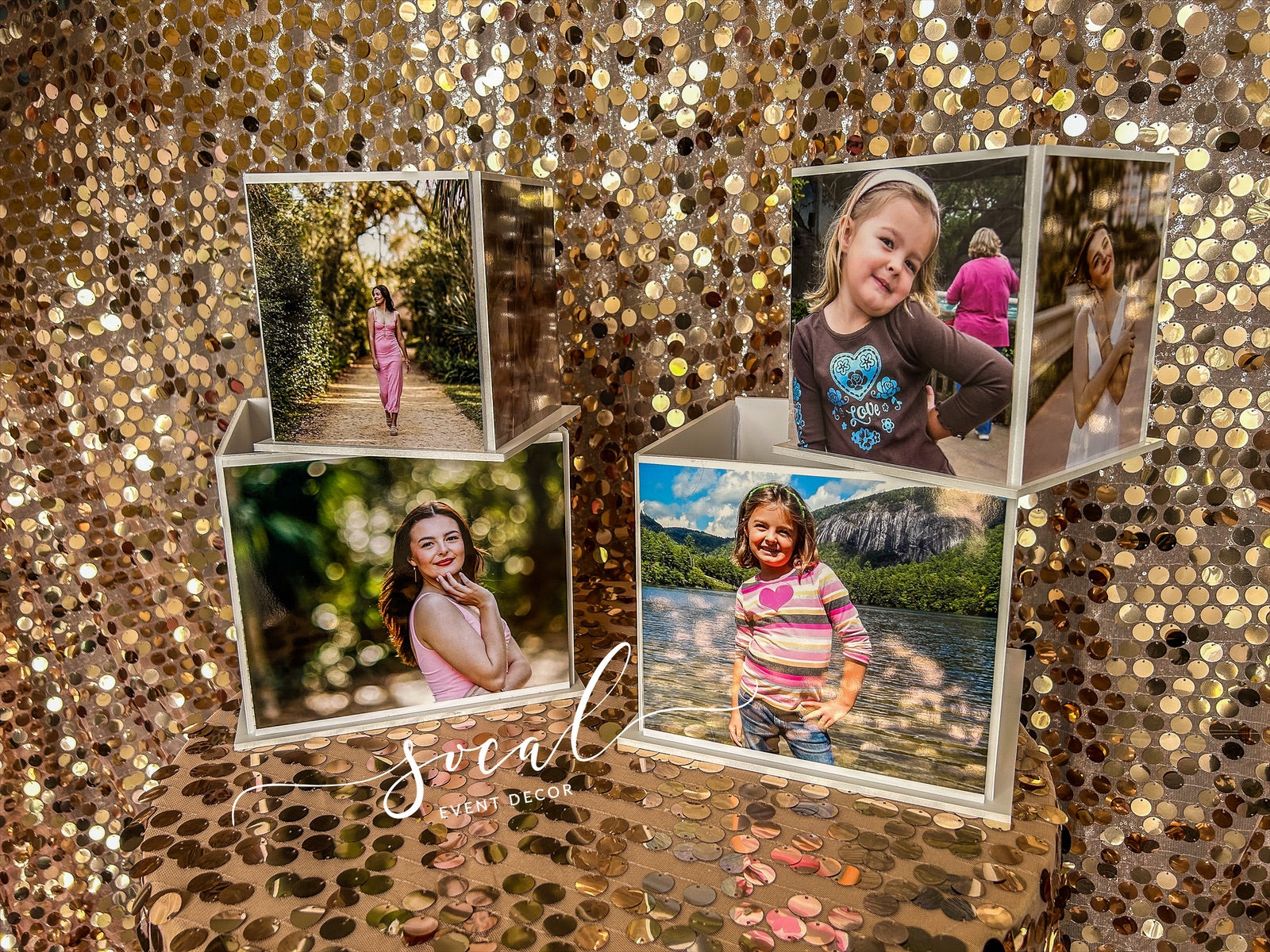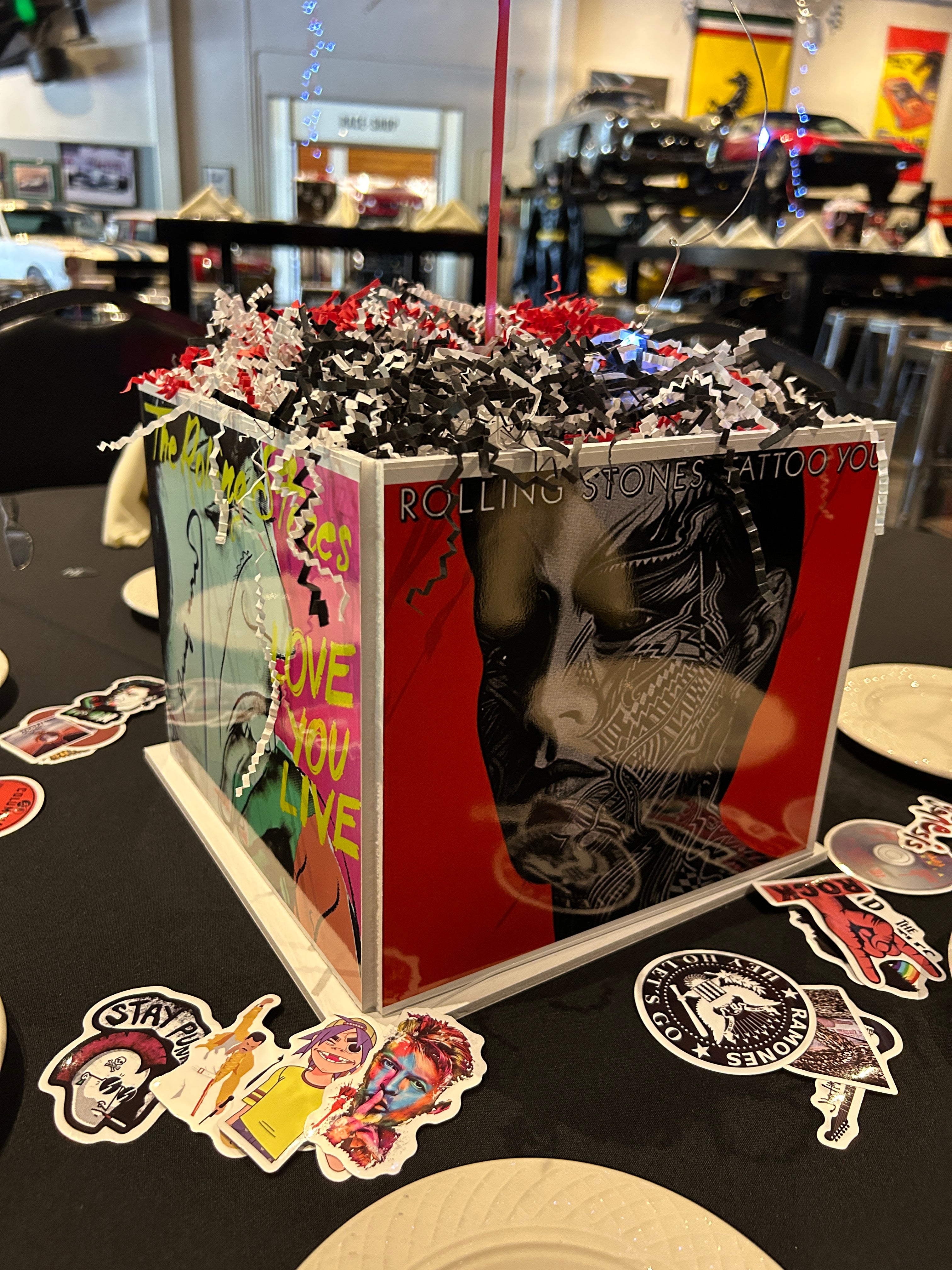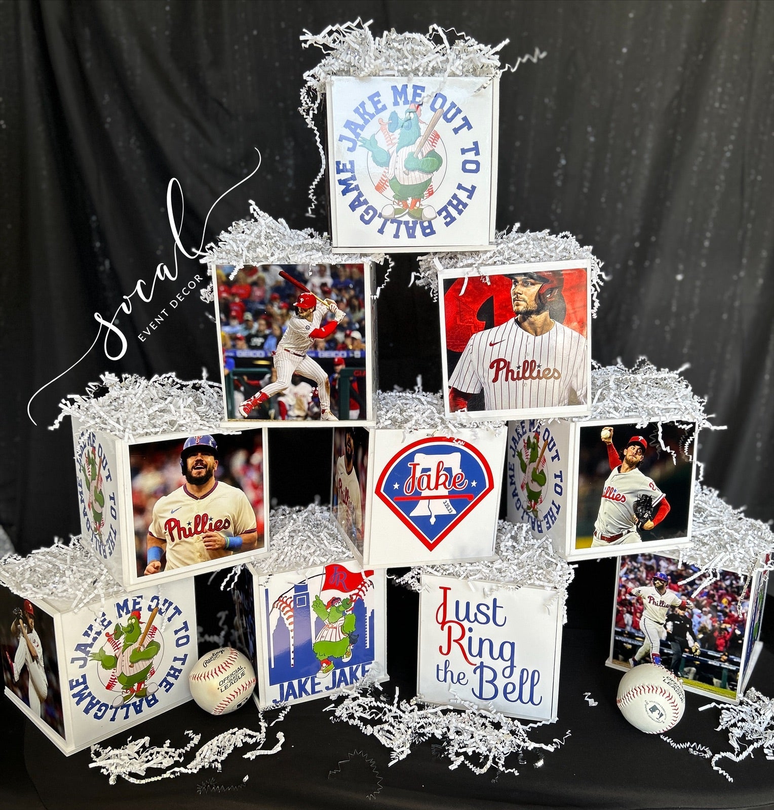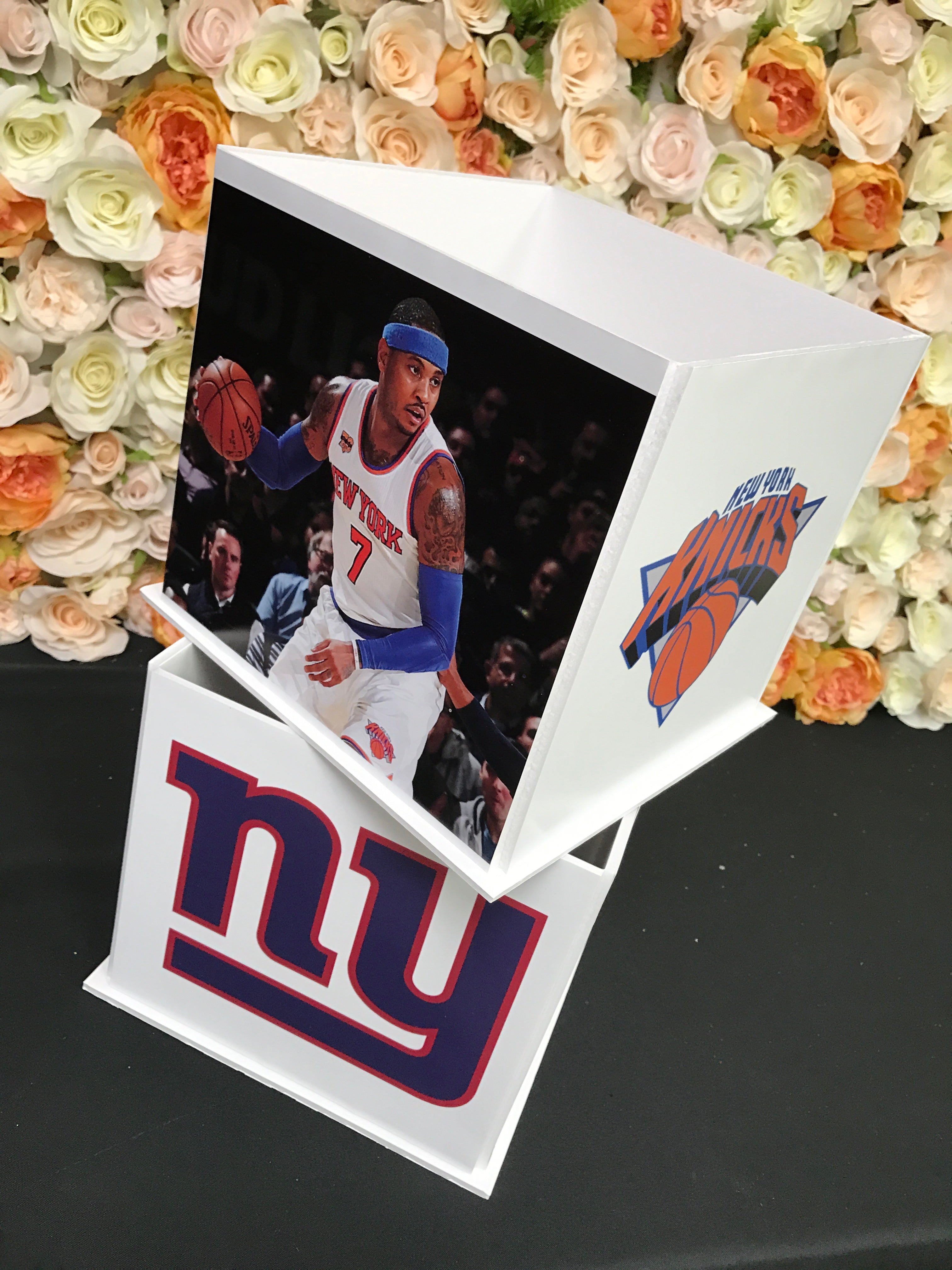 USA Made! Please support Local! Fun four-way designed box. A different custom graphic on each side! The dimensions of this box are 10 x 10 and 6"x6". Ordering ONE is for ONE centerpiece.