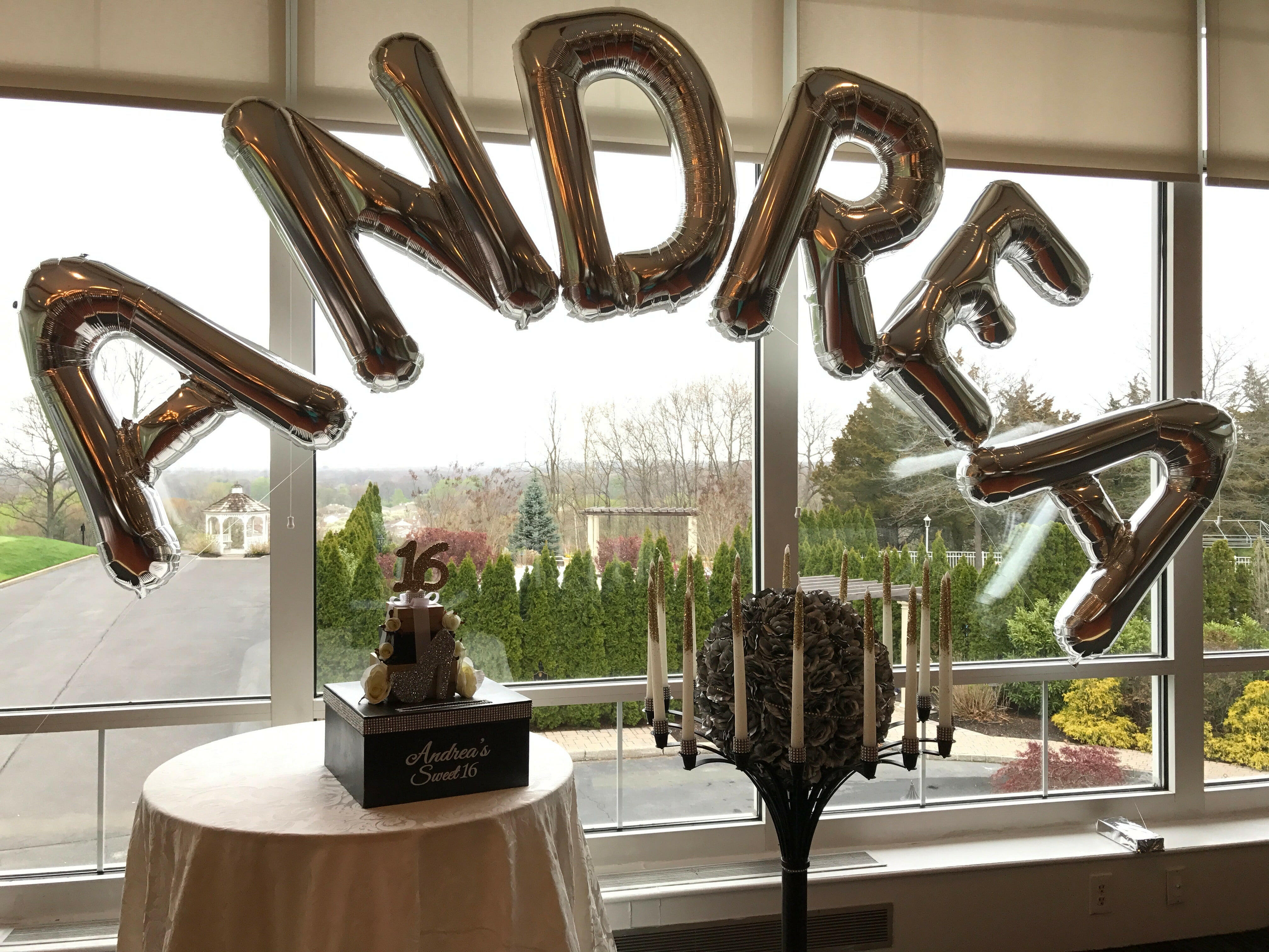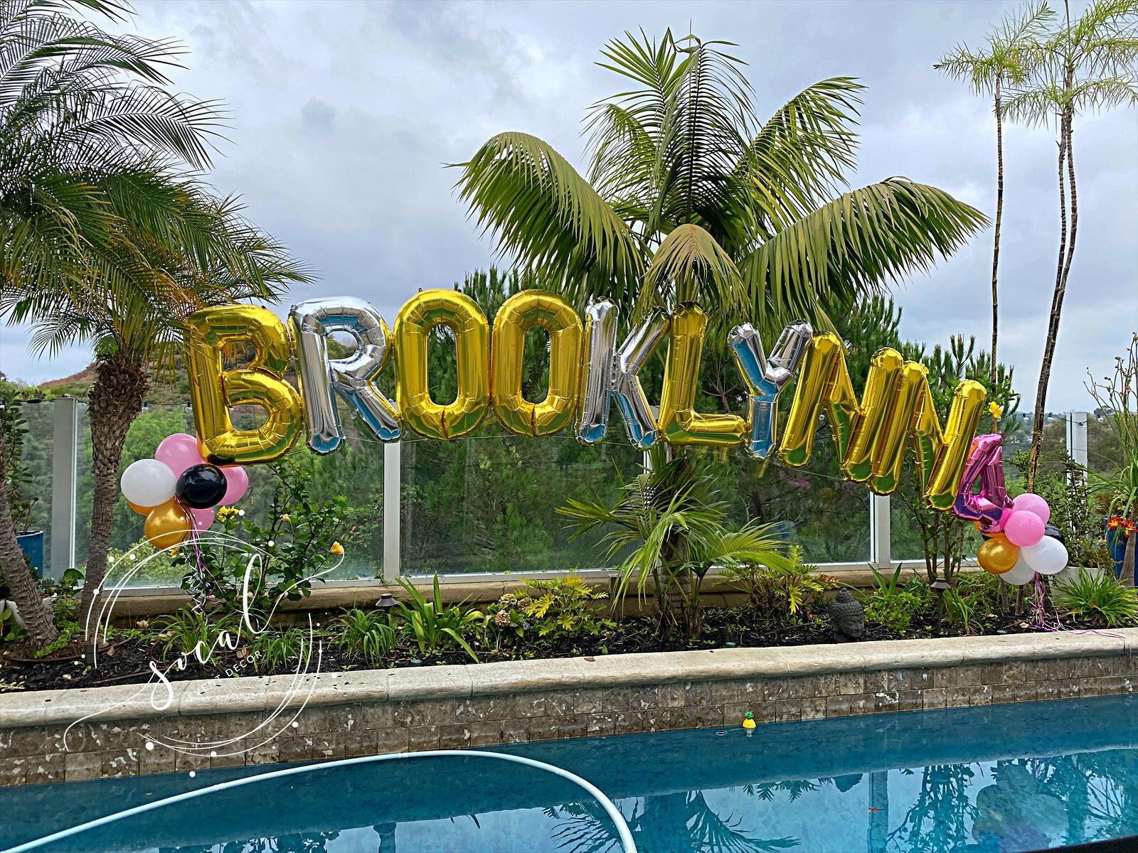 Your name or saying in balloons! These are huge at nearly 3' tall each. We make the name into a beautiful arch. Also available - numbers!