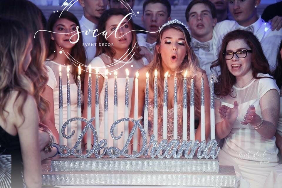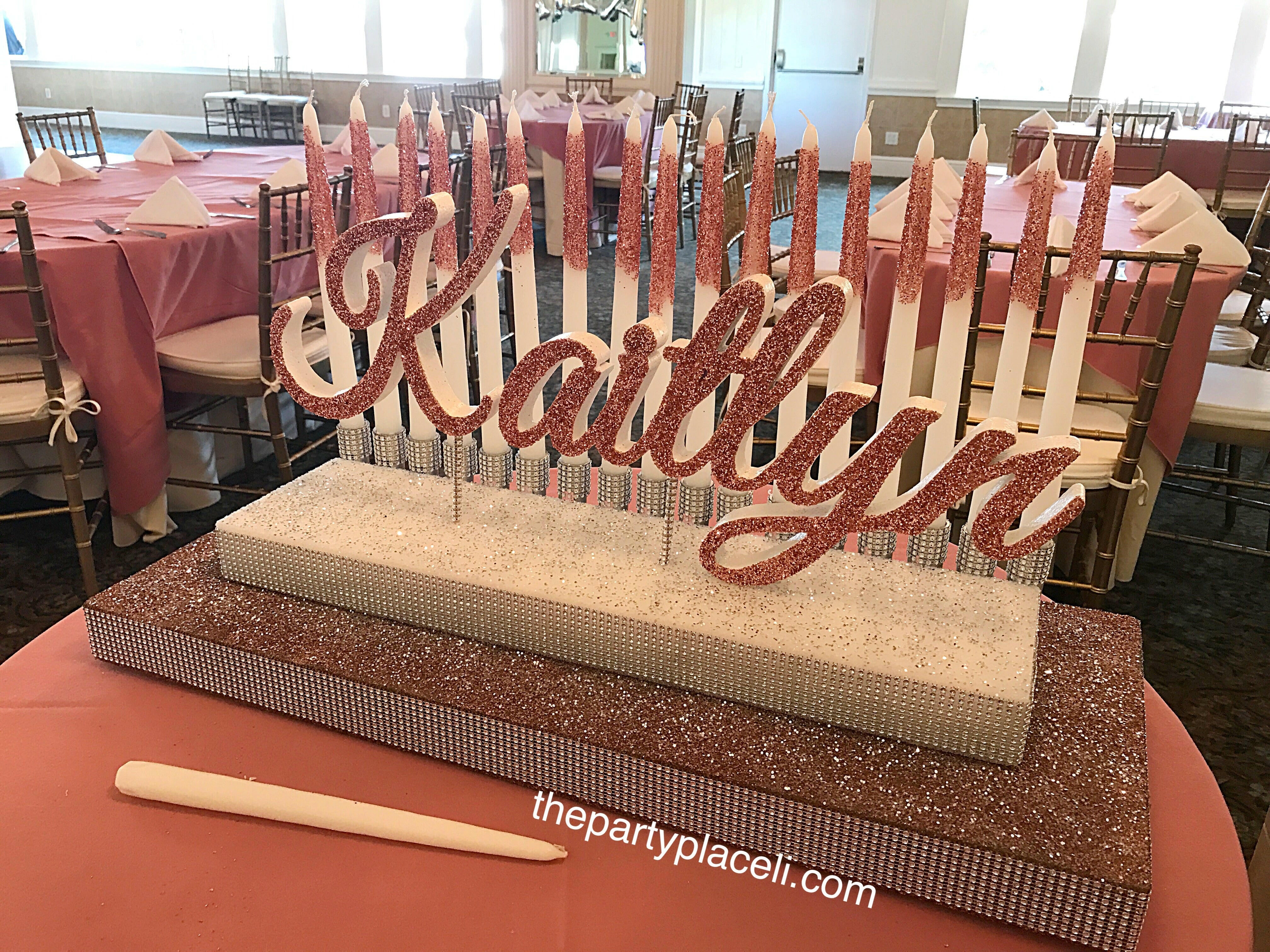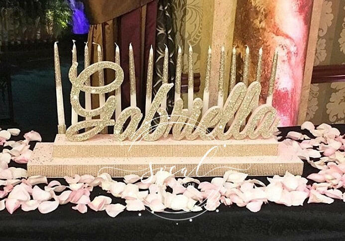 Our candle lighting centerpieces come with up to 17 gold or silver blinged candle holders. Candles may be purchased separately.