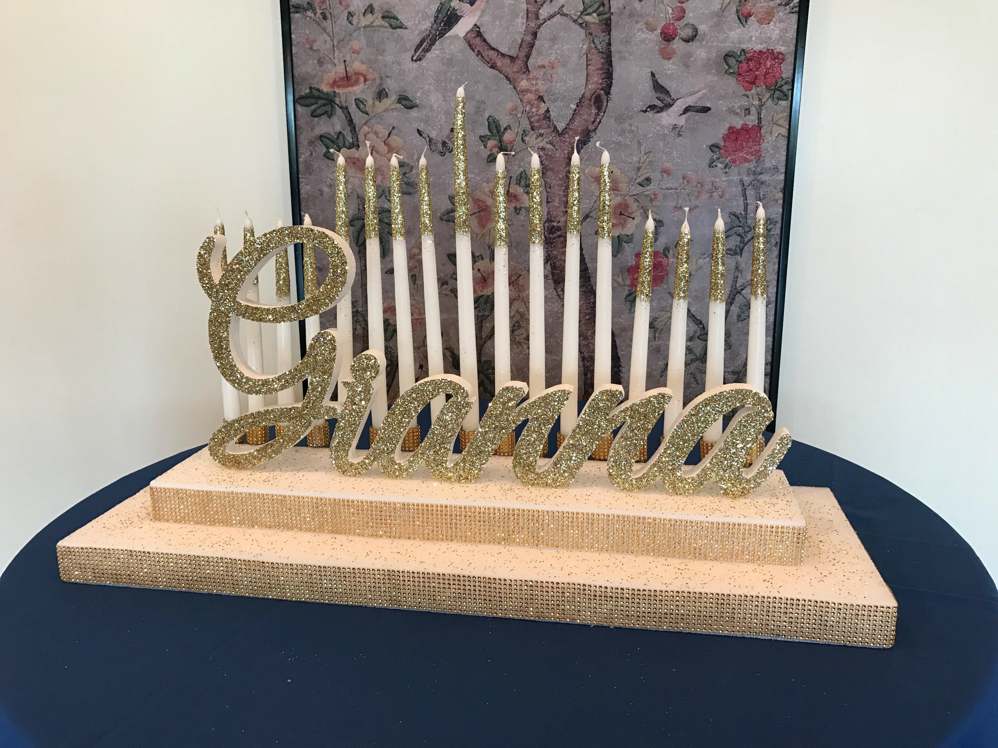 This is a totally customizable Two-Tiered Candle Lighting Centerpiece! You choose the base color, trim, paint and glitter colors and of course, the name!
