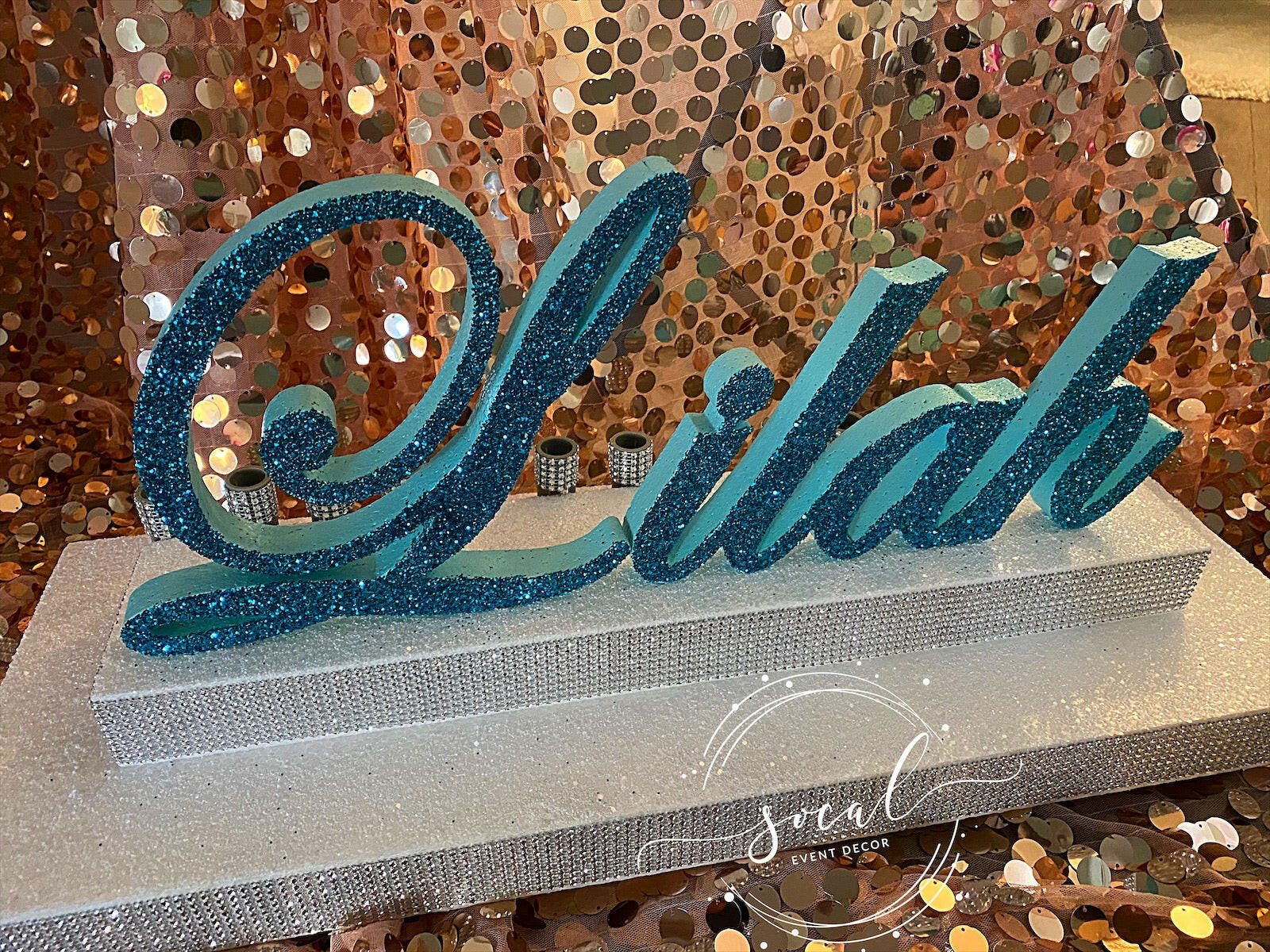 Two-Tiered Candle Lighting Centerpiece in size Medium! You choose the base color, trim, paint and glitter colors and of course, the name!