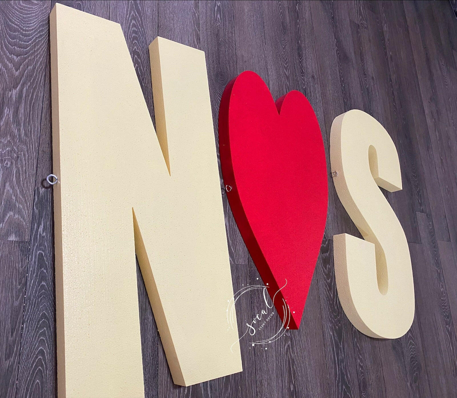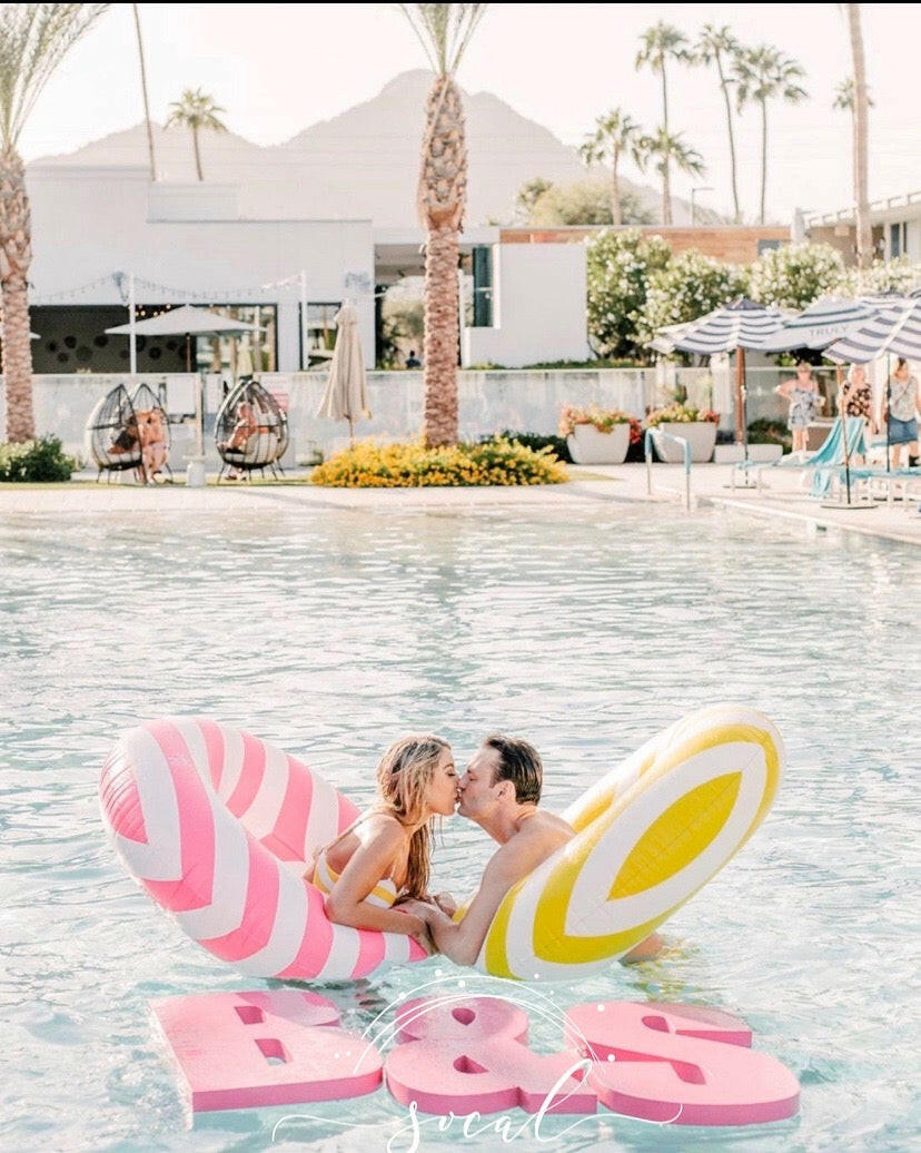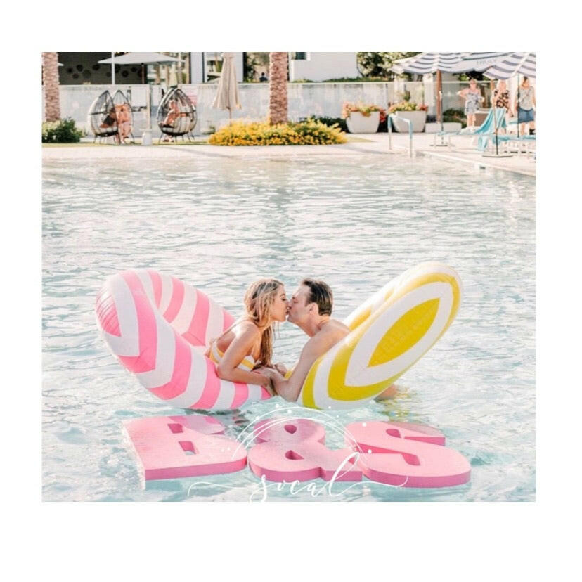 This is custom item is a statement for your outdoor event or pool party! Yes it floats in the pool!! This prop is huge at approximately 35.5"H x 54" L for 3 letters. Each letter is approximately 35" H by 17” wide and they are 2" thick. Painted top and side in your choice of color!